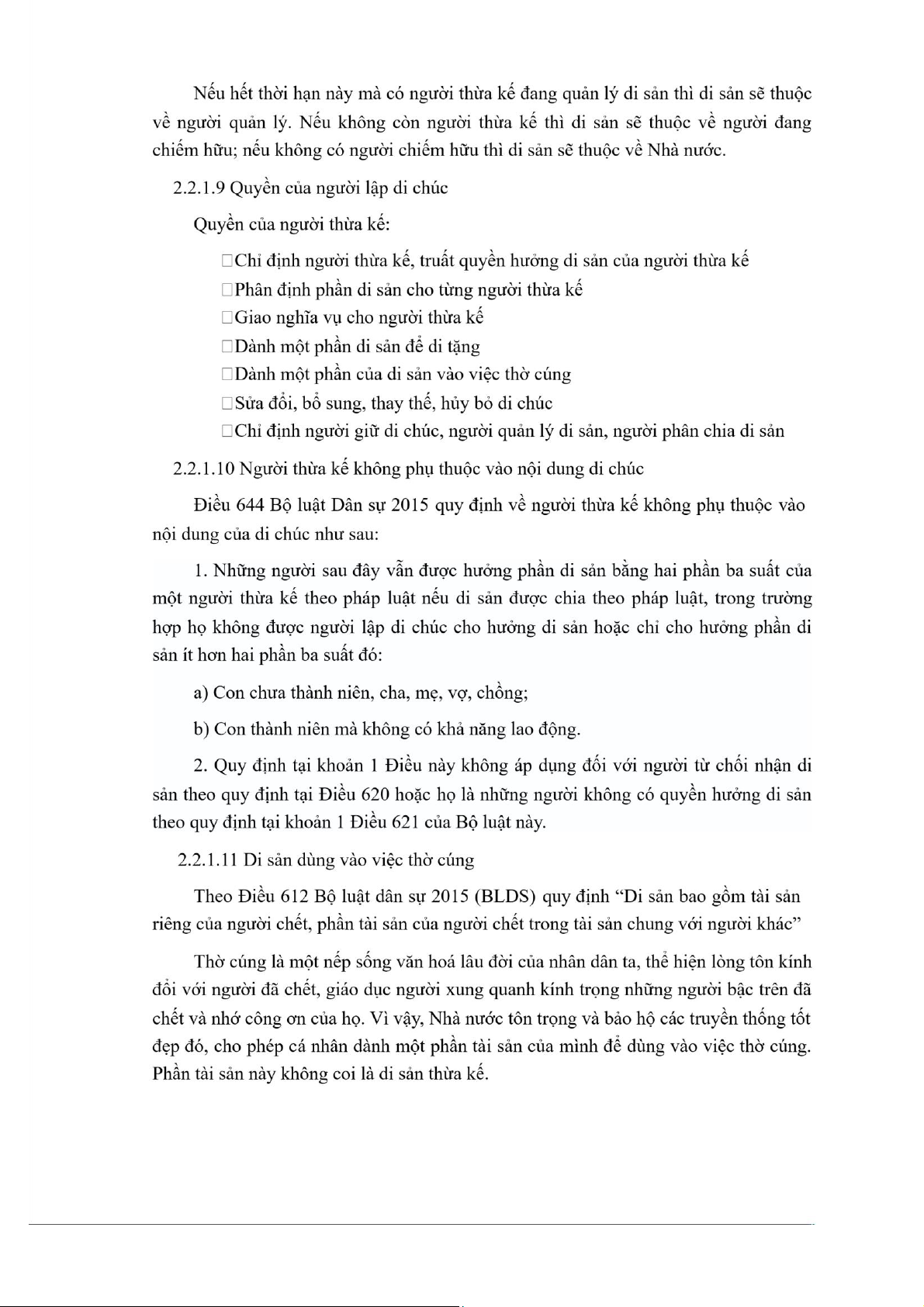 2.2.1.9 Quyền của người lập di chúc ................................................................ ... .. 16