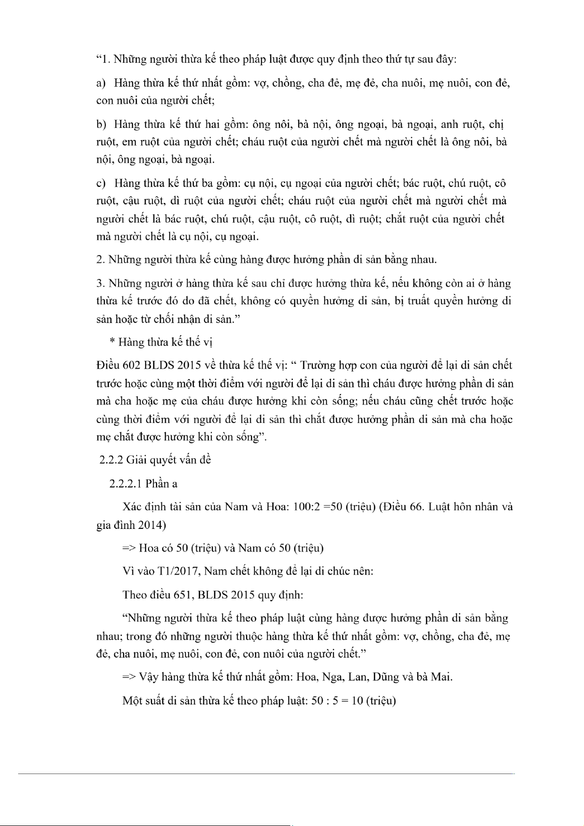 2.2.2.2 Phần b:Giả sử khi Nam c hết có di chúc hợp pháp đ ể lại toàn bộ tài sản