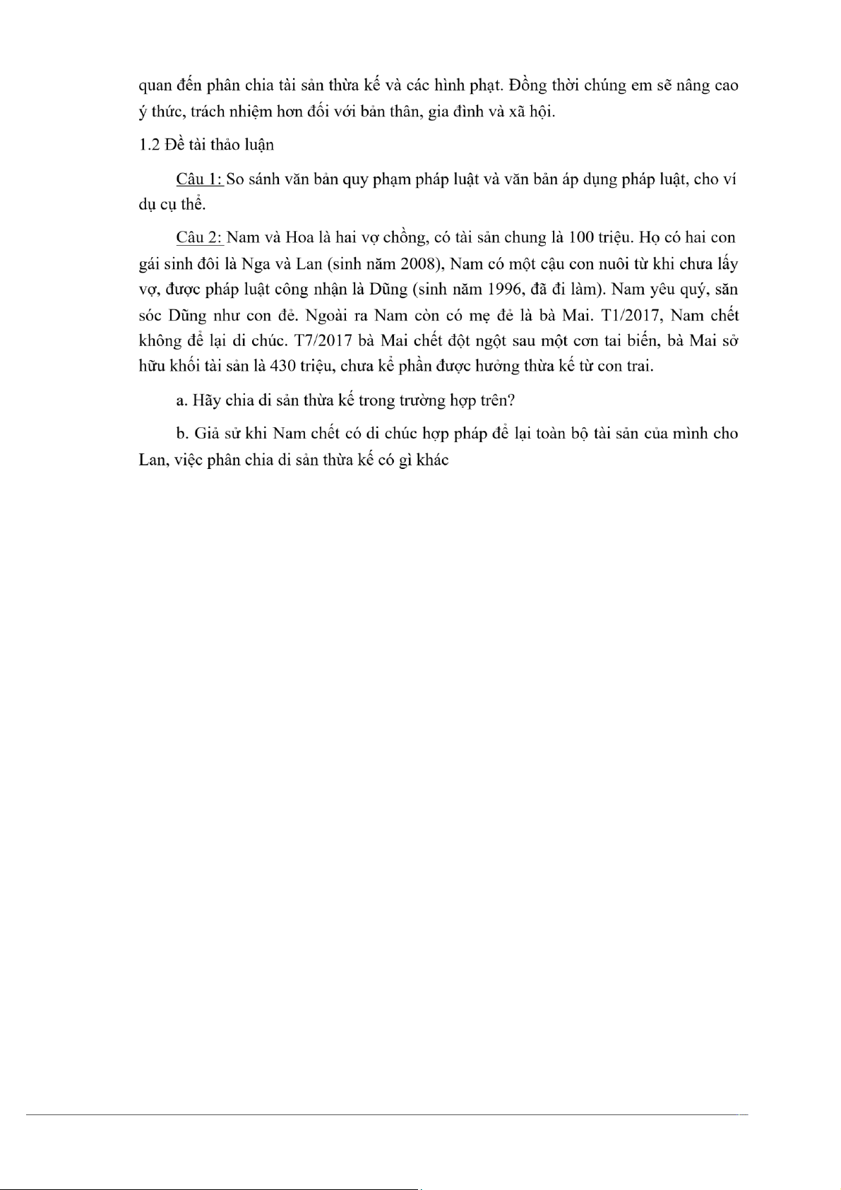Qua việc nghiên cứu, thảo luận chúng em sẽ hiểu sâu sắc hơn về pháp luật thừa kế