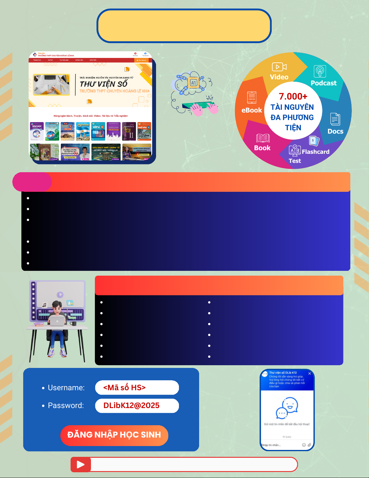 Trắc nghiệm kiến thức Online Username: Password: DLibK12@2025