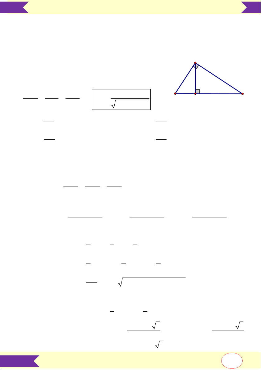 AH BH .CH ; AH .BC . AB AC ; 1 1 1 A . B AC ▪ B C AH . H 2 2 2 AH AB AC 2 2 AB AC AC AB ▪ sin B (đối/huyền); ▪ cos B (kề/huyền); BC BC AC AB ▪ tan B (đối/kề) ; ▪ cot B (kề/đối). AB AC