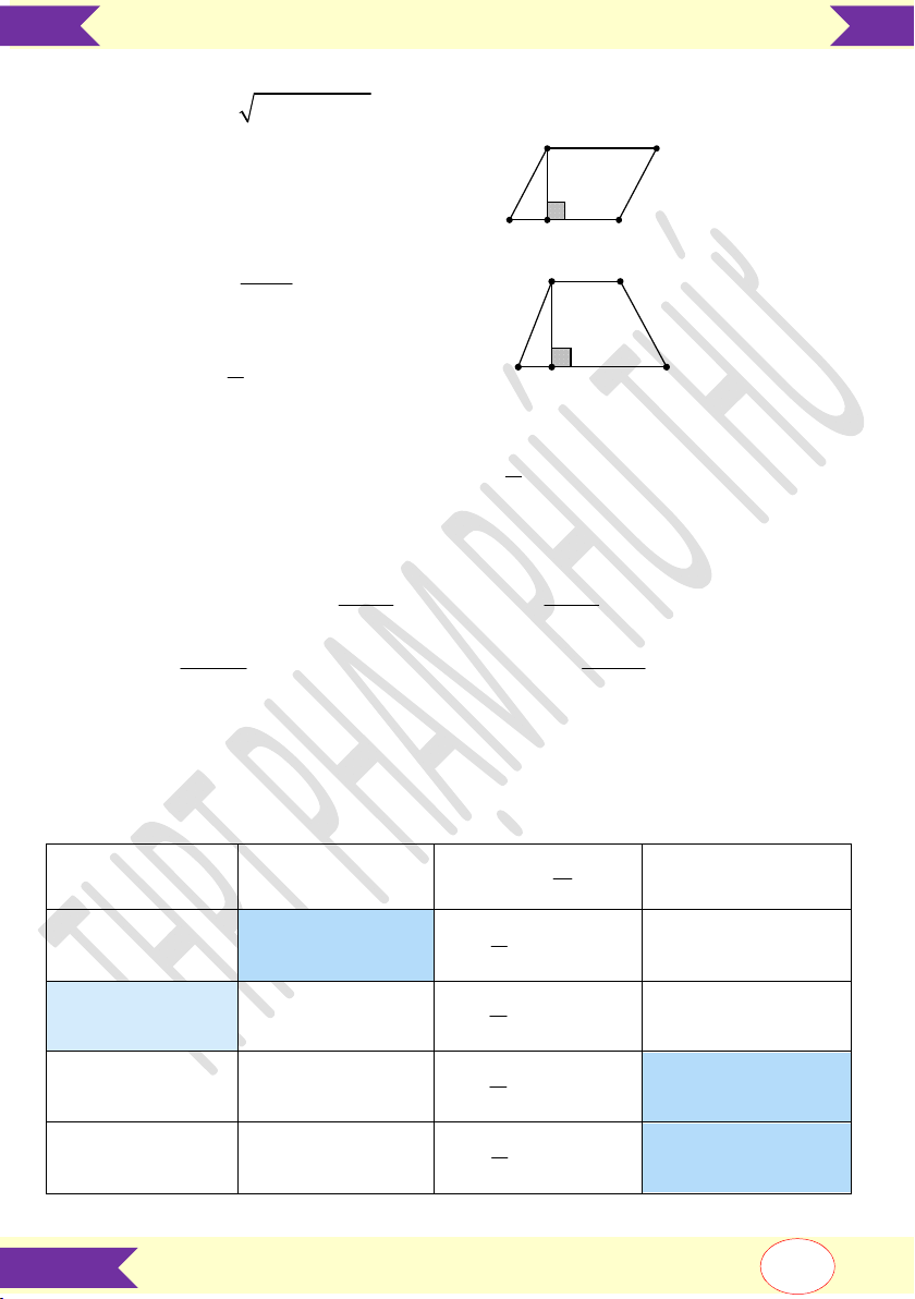 ABC vuông tại A : S A . B AC AH.BC . A BC 2 2 (canh) 3 2 (canh) . 3 Tam giác đều: ▪ Đường cao . ▪ Diện tích: . 2 4 Hình vuông: