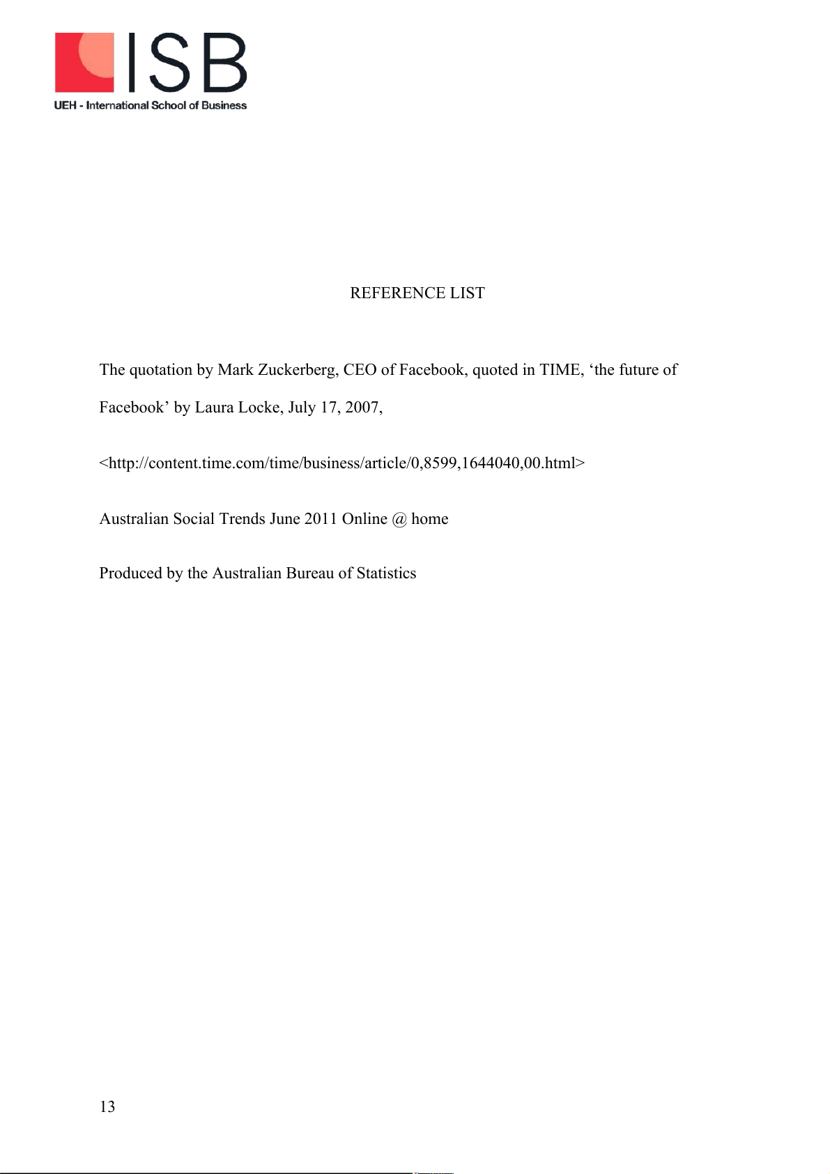 The extent of the discussion was a significant research restriction. 12 REFERENCE LIST