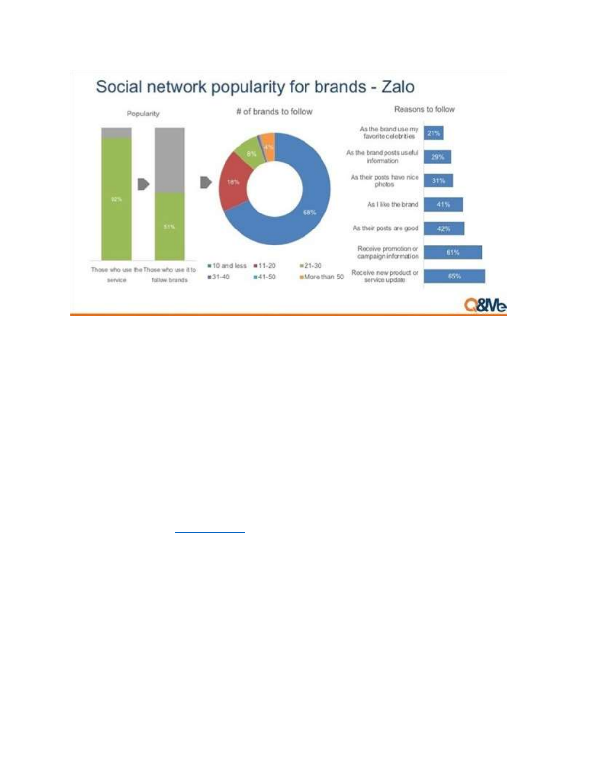 Chỉ có 51% người được khảo sát theo dõi các fanpage trền Zalo, trung bình mốẽi