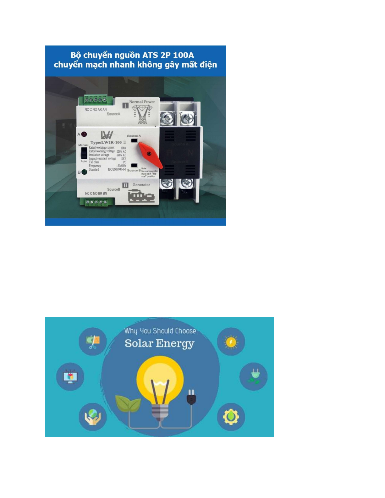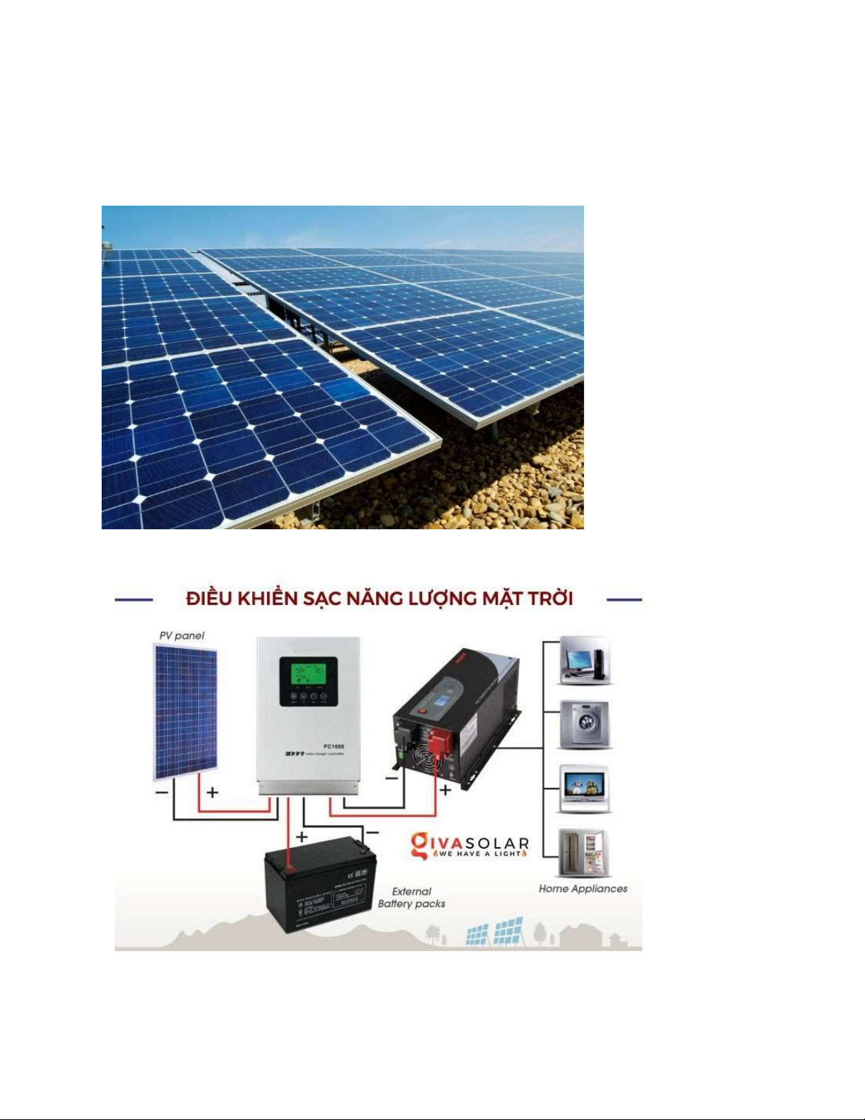 What are the basic components of a solar power system? 1. Solar panels 2. Solar charge controller 3. Solar inverter lOMoAR cPSD| 59256994 4. Storage battery 5. ATS automatic switchgear lOMoAR cPSD| 59256994 Trần Quang