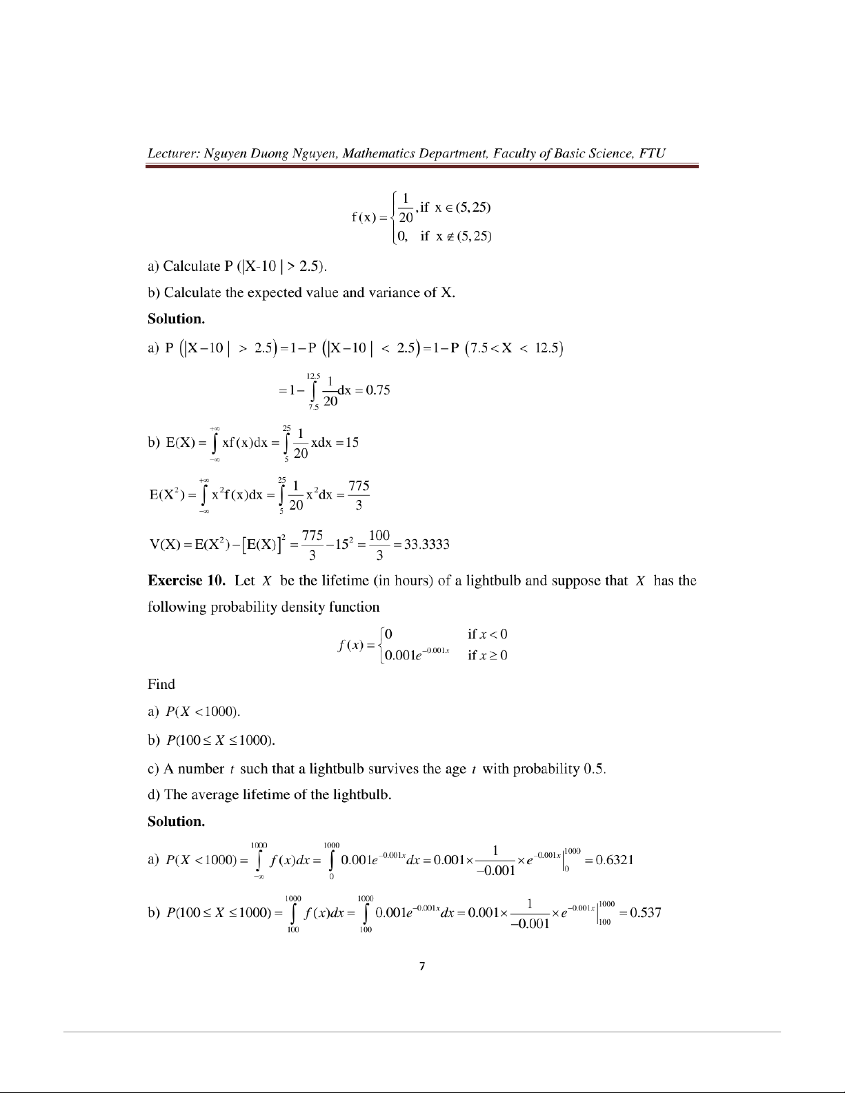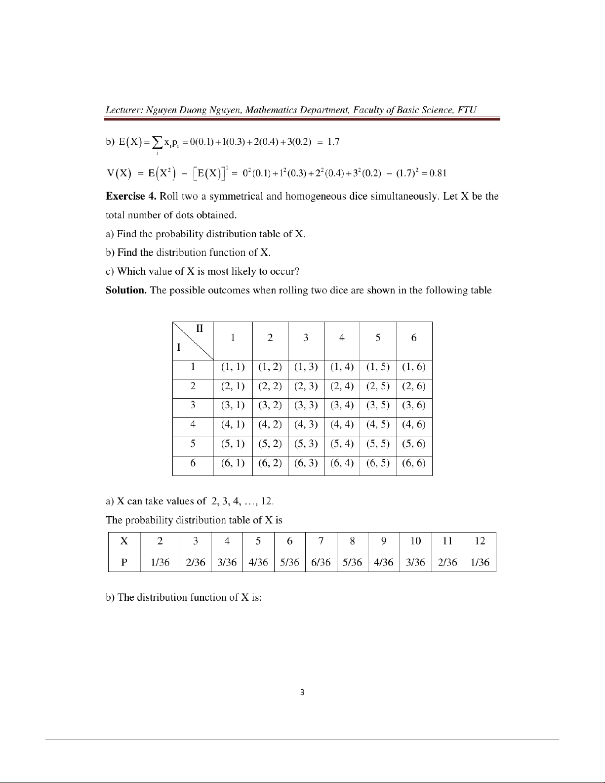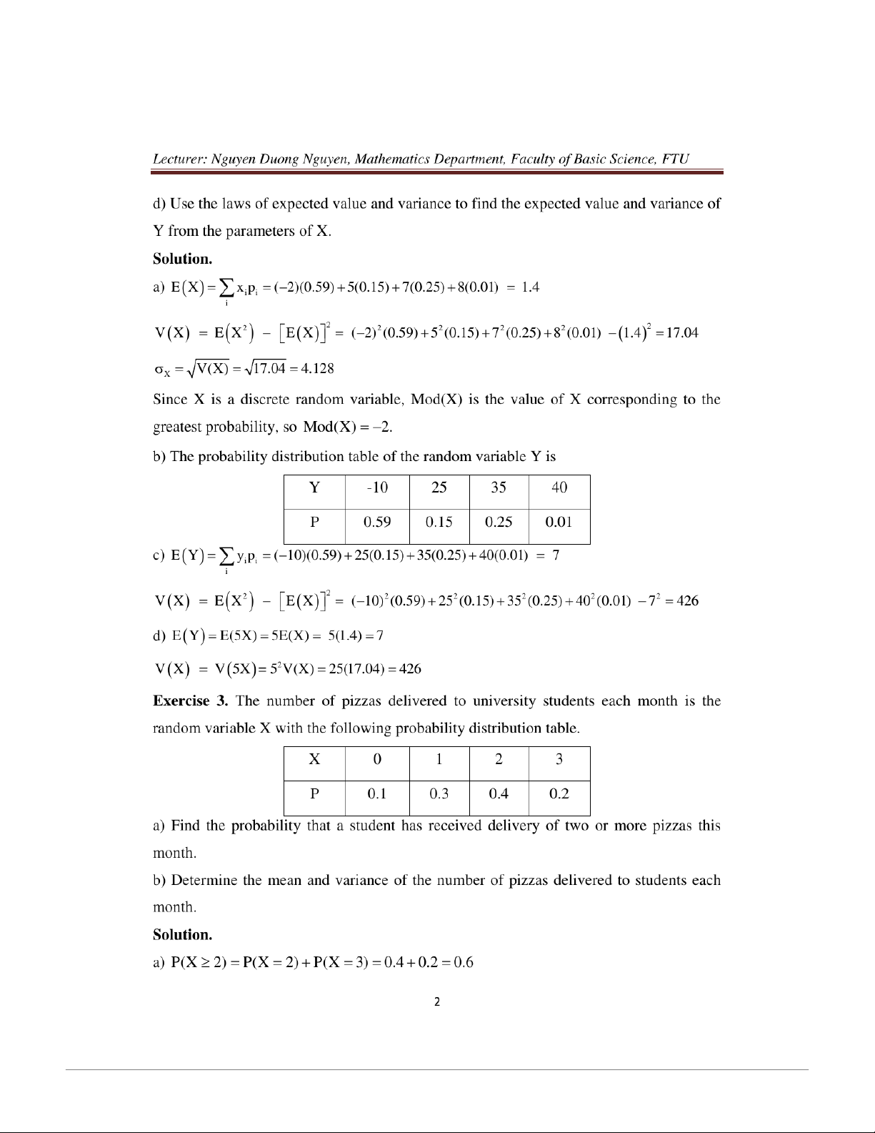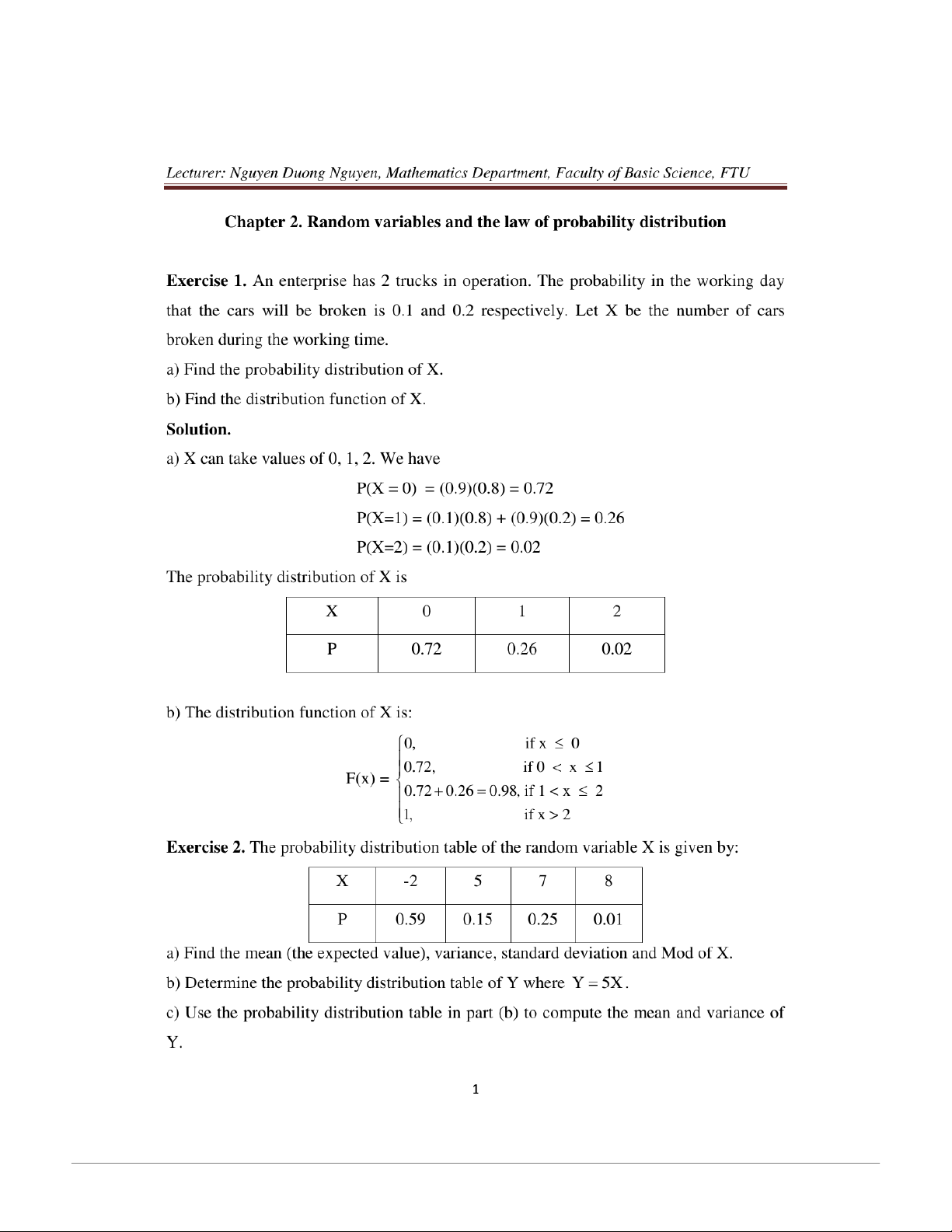 Solution to Chapter 2 - Random Variables & Probability Distributions môn Xác suất thống kê| Trường Đại học Ngoại Thương