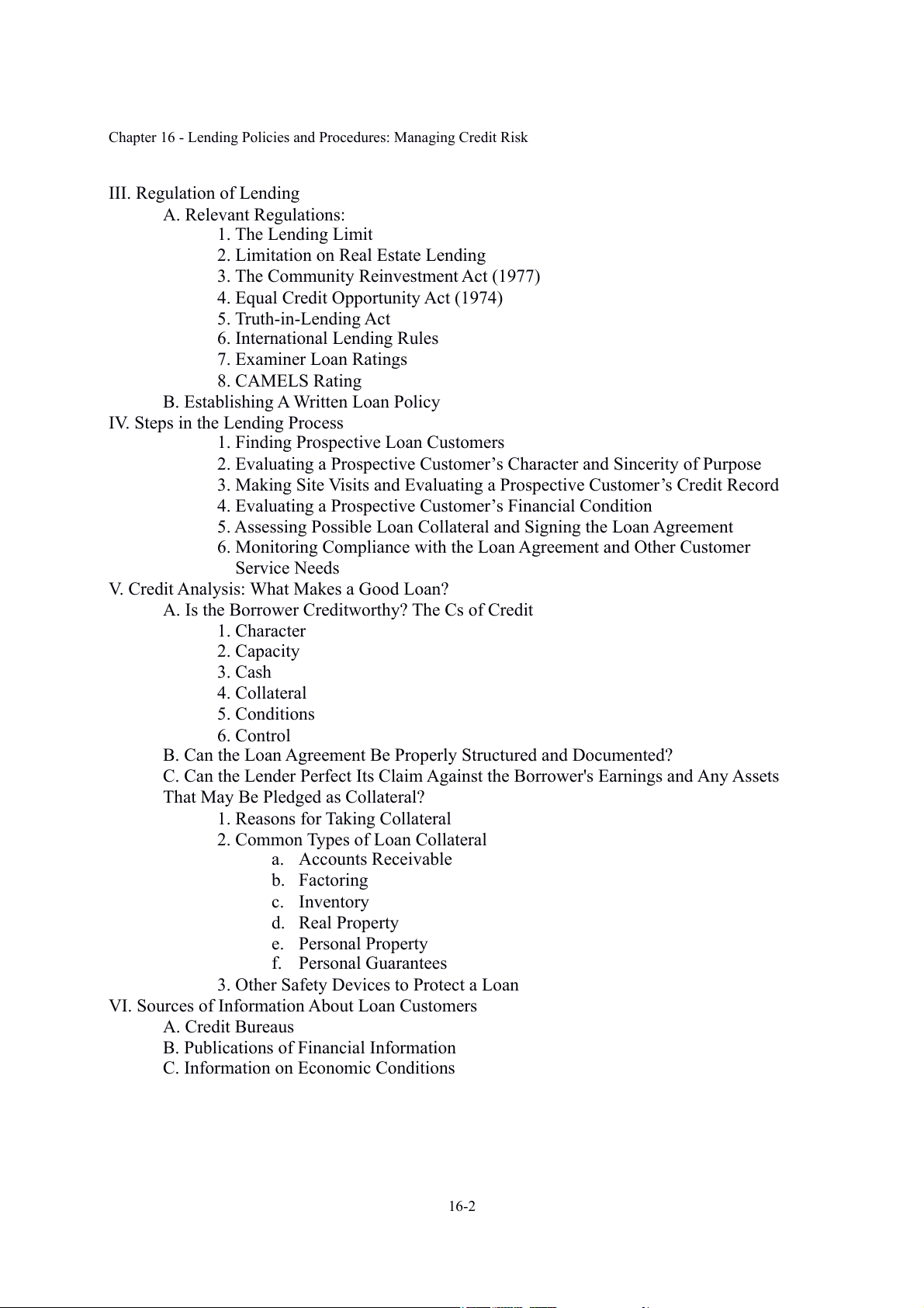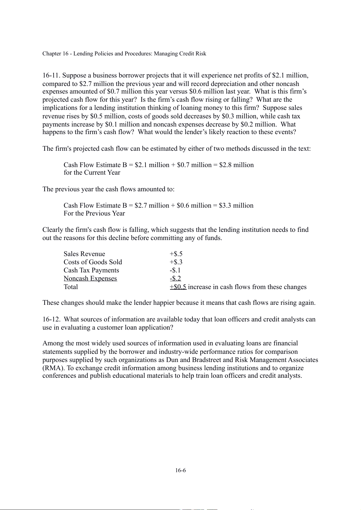 Chapter 16 - Lending Policies and Procedures: Managing Credit Risk