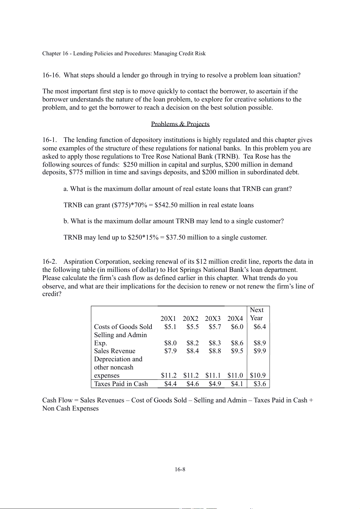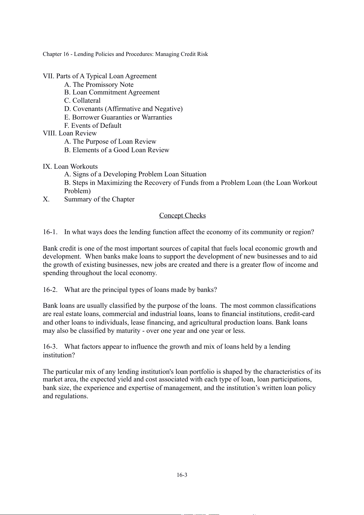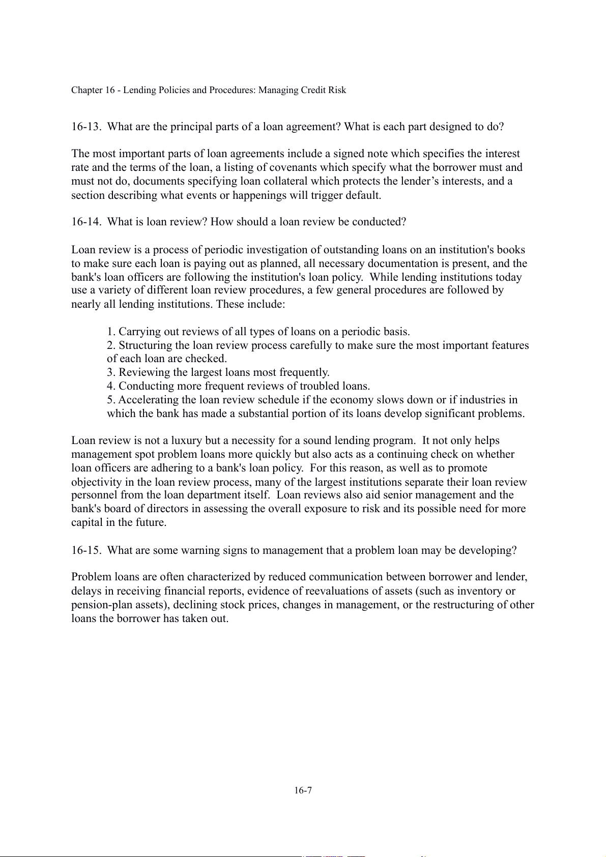 should come, procedures for detecting and working out problem loan situations. 16-4