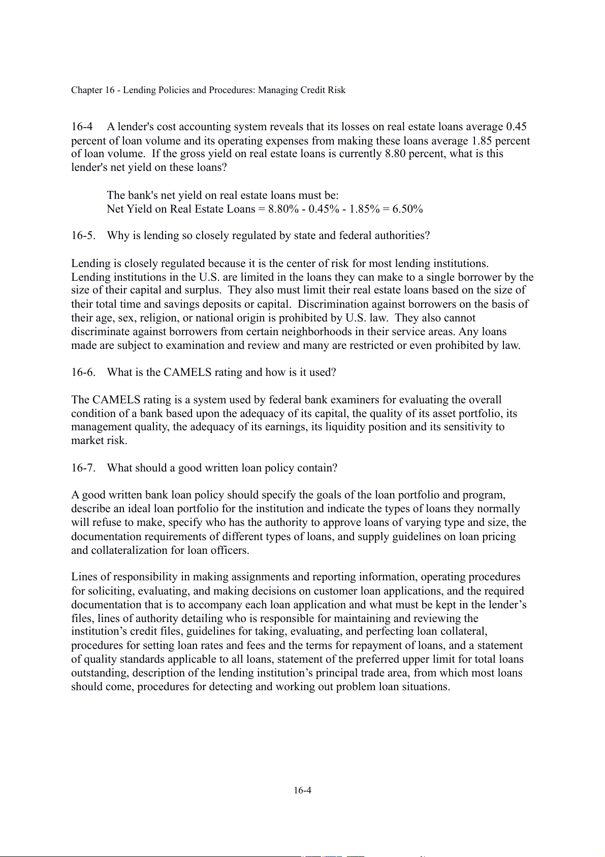 Chapter 16 - Lending Policies and Procedures: Managing Credit Risk 16-4
