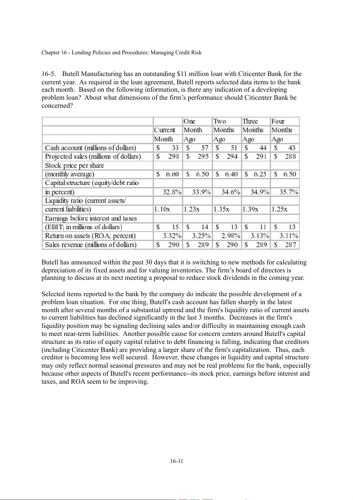 16-5. Butell Manufacturing has an outstanding $11 million loan with Citicenter Bank for the