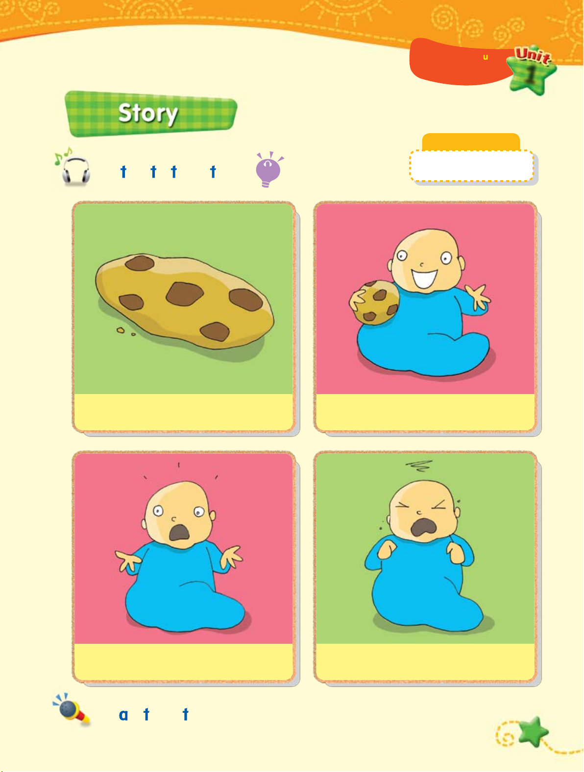 Lis en o he s ory. Track a, and, no, an 11 A cookie. A cookie and a baby. A baby and no cookie. An angry baby.