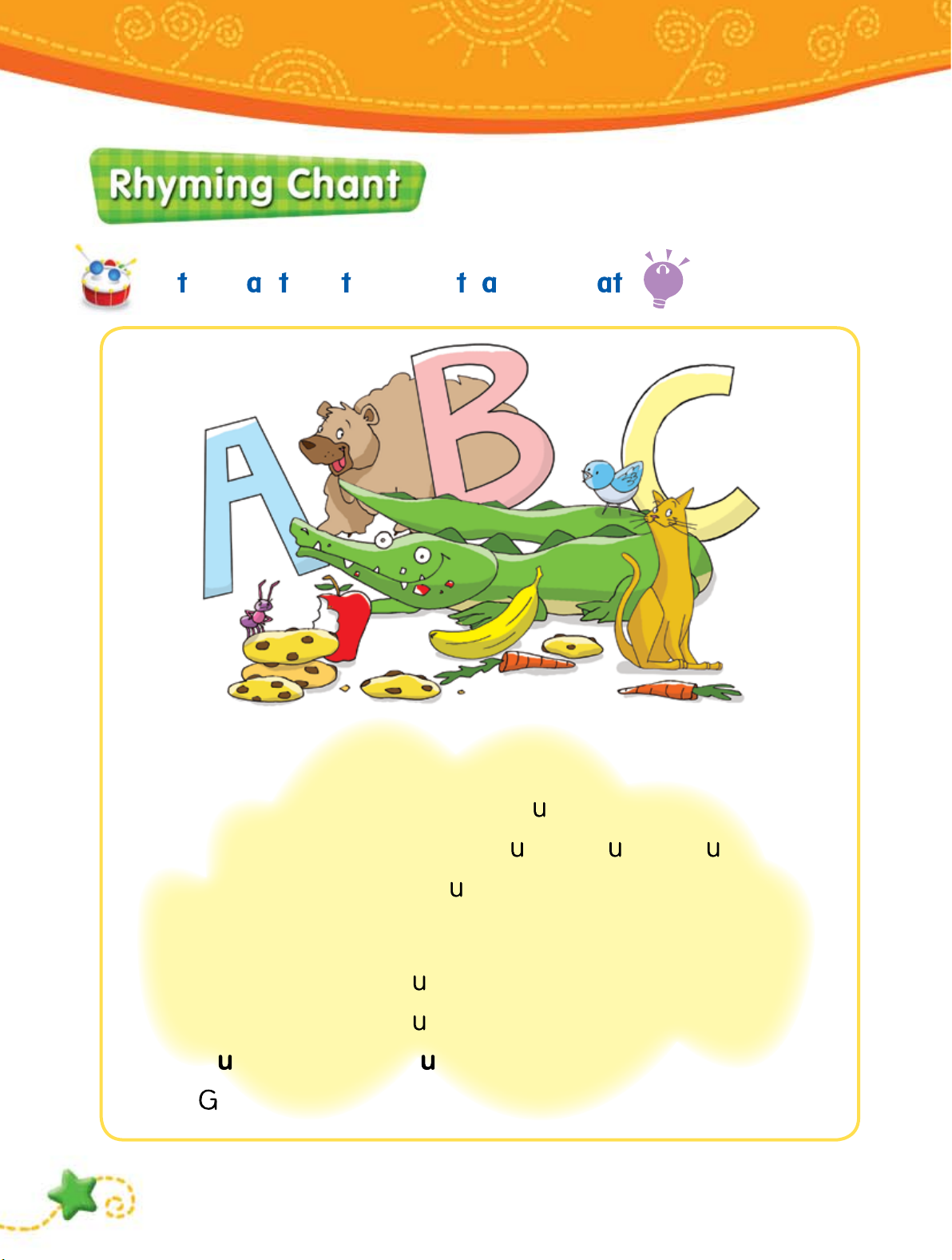 Here comes Alligator! M nch! M nch! M nch! No more apple for l nch!! B, C