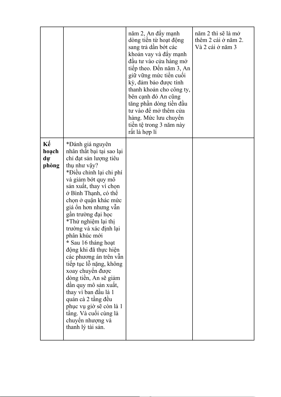 *Điều chỉnh lại chi phí và giảm bớt quy mô sản xuất, thay vì chọn ở Bình Thạnh, có thể chọn ở quận khác mức giá ổn hơn nhưng vẫn gần trường đại học *Thử nghiệm lại thị