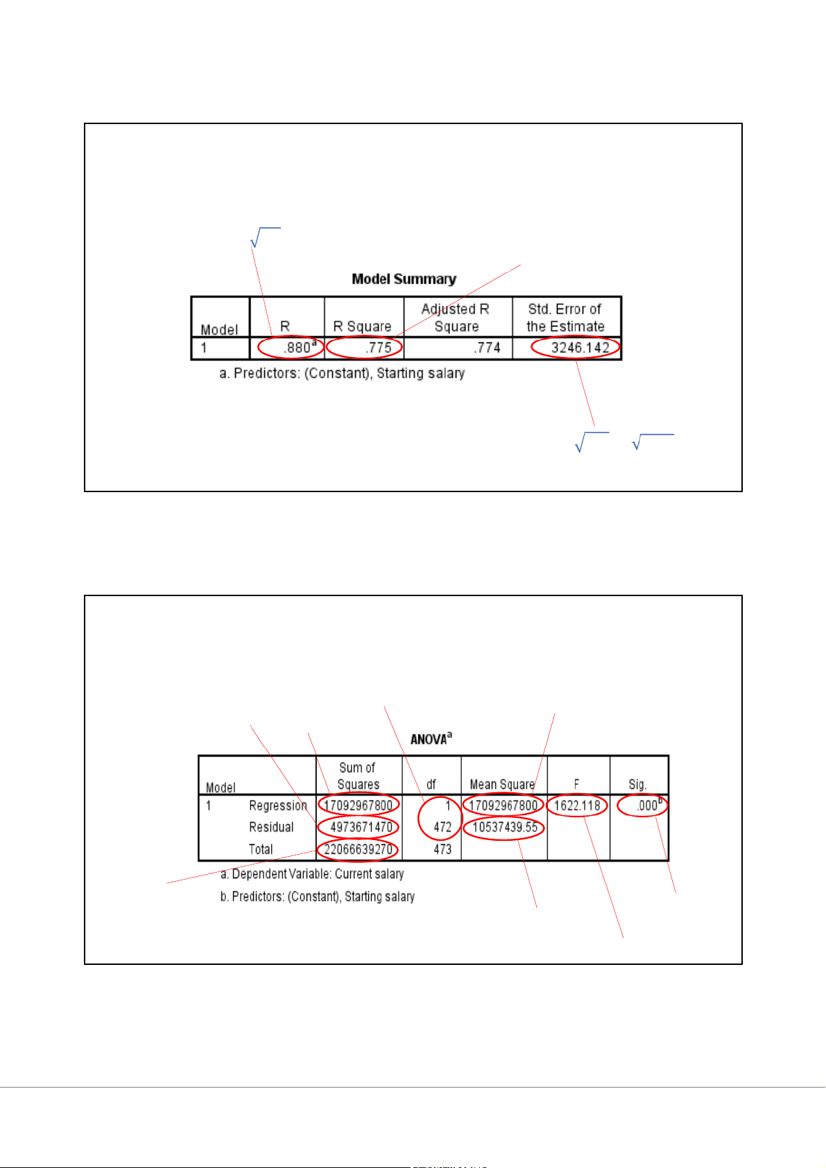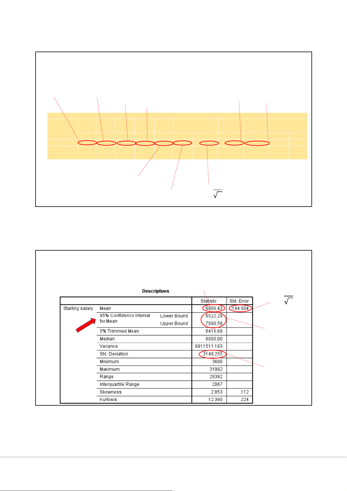 BẢNG KẾT QUẢ SPSS 1 Thống kê mô tả Cỡ mẫu n Statistics St N a V r atliin d g salary 474 = Missing 0 Mean 6806.43 Std. Error of Mean 144.604 Median 6000.00 Me R=Max-Min Mode 6000 Std. Deviation 3148.255 Mo Variance 9911511.193 Skewness 2.853 Min S Std. Error of Skewness .112 Range 28392 S2 Minimum 3600 Max Maximum 31992 Phân vị mức Q1 Sum 3226250 ∑= .n 25 4980.00 Percentiles 50 6000.00 Me Q 75 7047.00 3 2 1 4/15/2021 Thống kê mô tả Cỡ mẫu n R=Max-Min SS2 Min Max Descriptive Statistics N Range Minimum Maximum Sum Mean Std. Variance Skewness Deviation Statistic Statistic Statistic Statistic Statistic Statistic Std. Error Statistic Statistic Statistic Std. Error Starting salary 474 28392 3600 31992 3226250 6806.43 144.604 3148.255 9911511.193 2.853 .112 Valid N (listwise) 474 ∑= .N = 3