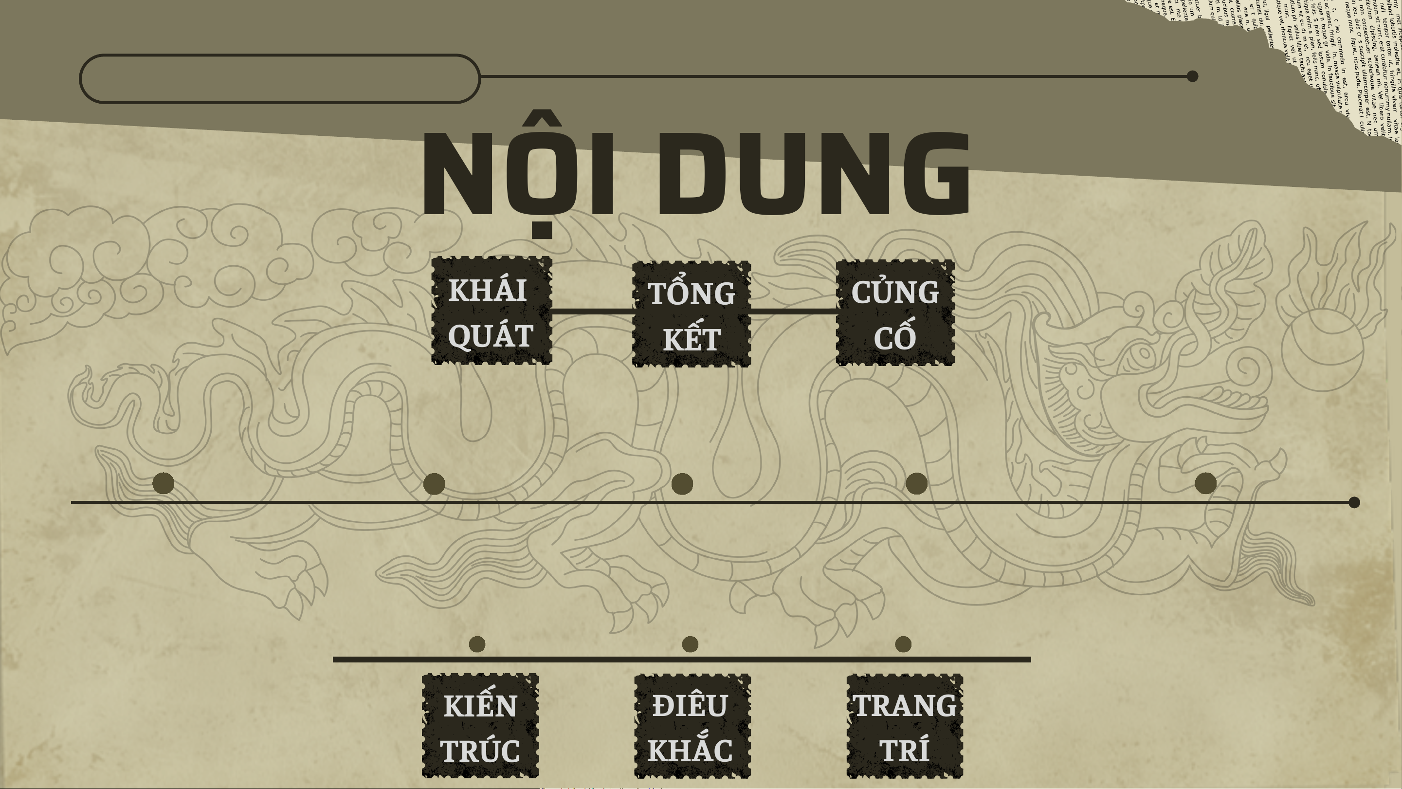 LICH SU MY THUAT THE GIOI VA VIET NAM NỘI DUNG KHÁI TỔNG CỦNG QUÁT KẾT CỐ 1010-1125 1226-1400 1428-1527 1533-1789 1802-1945 THỜI LÝ THỜI TRẦN THỜI THỜI LÊ THỜI NGUYỄN LÊ SƠ TRUNG HƯNG KIẾN ĐIÊU TRANG TRÚC KHẮC TRÍ I. KHÁI QUÁT 1. ĐẶC TRƯNG 2. ĐẶC ĐIỂM TRONG: 1.KIẾN TRÚC 2.ĐIÊU KHẮC 3.ĐỒ TRANG TRÍ THỜI LÝ LỊCH SỬ: