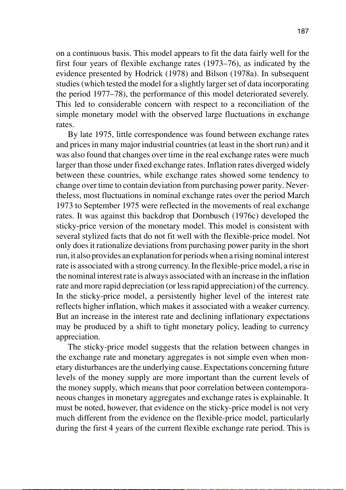 Other Sticky-Price Monetary Models of Exchange Rates 187