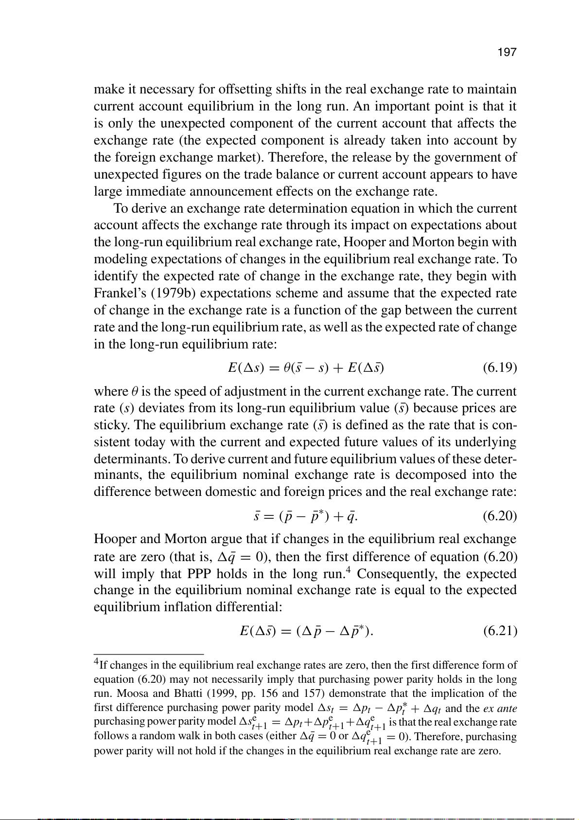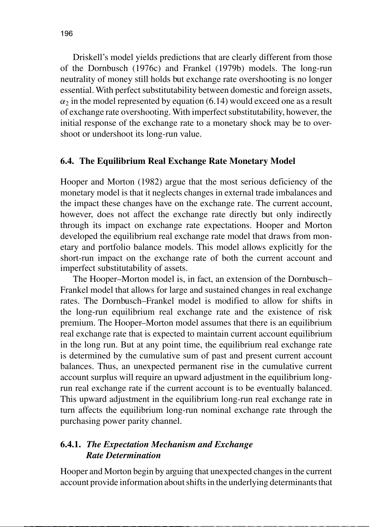(1981), and the equilibrium real exchange rate sticky-price model of Hooper