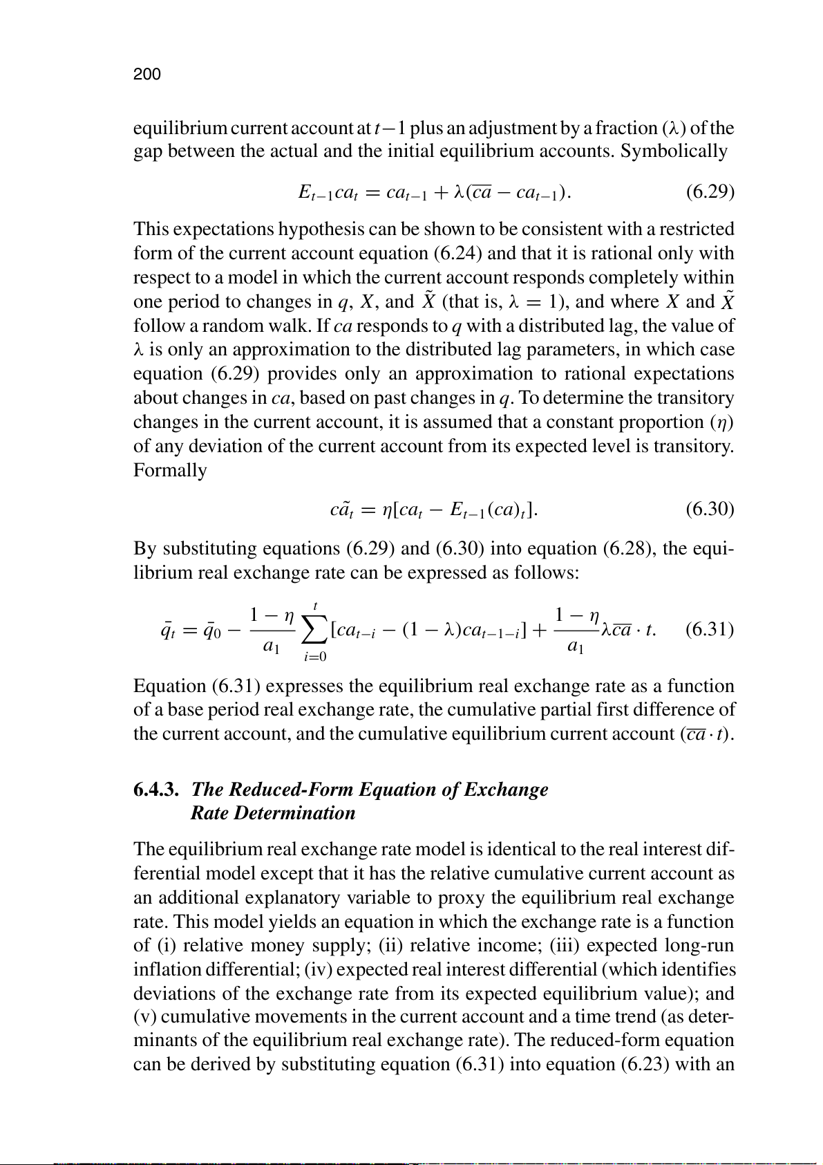 7In equation (6.32), q0 is the initial equilibrium real exchange rate, which is constant. 202