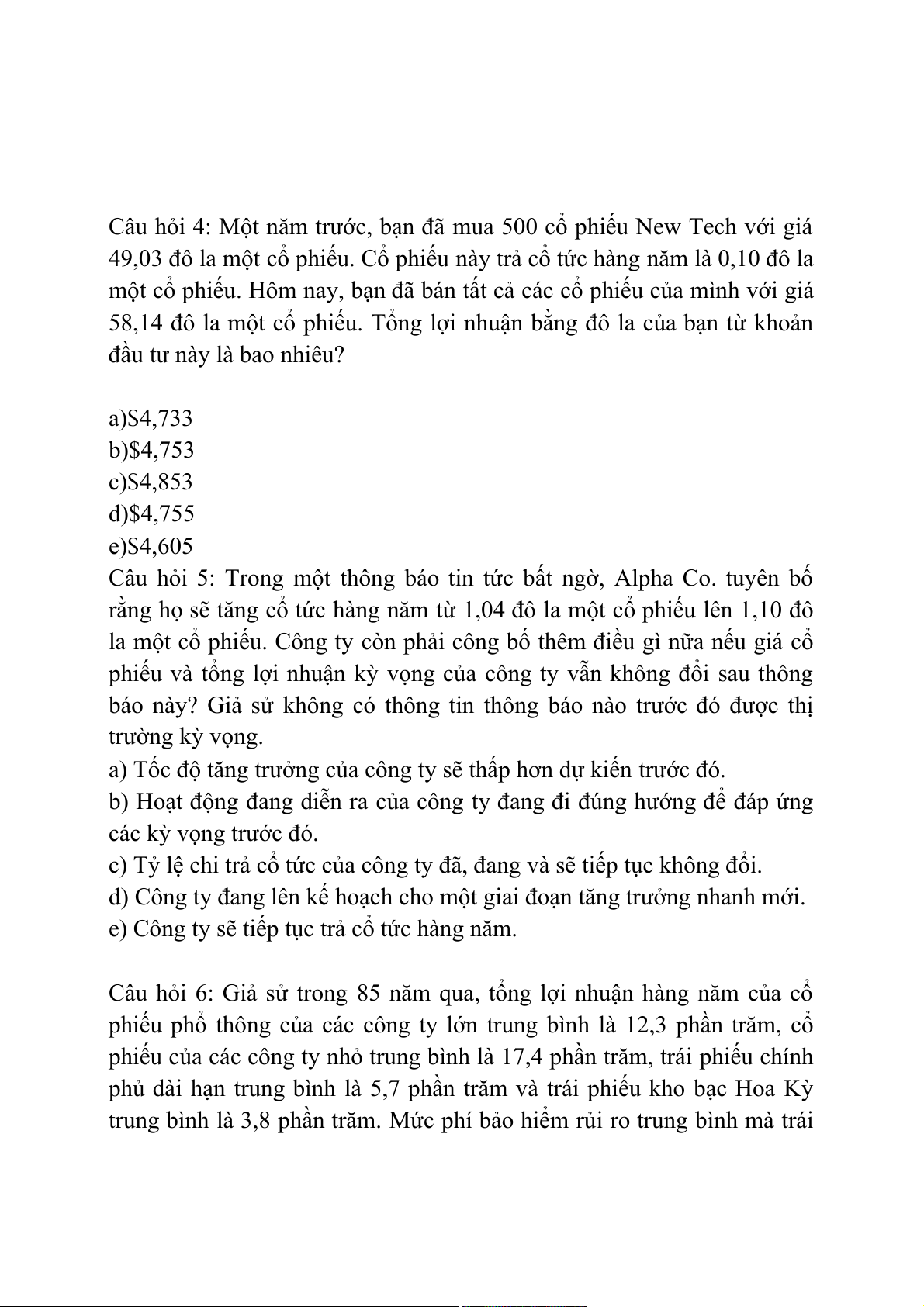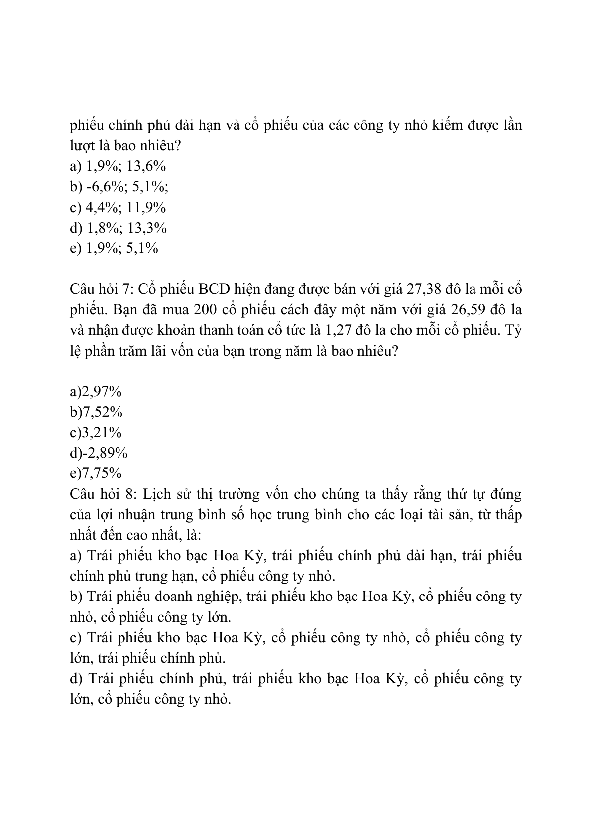 Câu hỏi 2: Một cổ phiếu có lợi nhuận hàng năm là 8 phần trăm, 14 phần