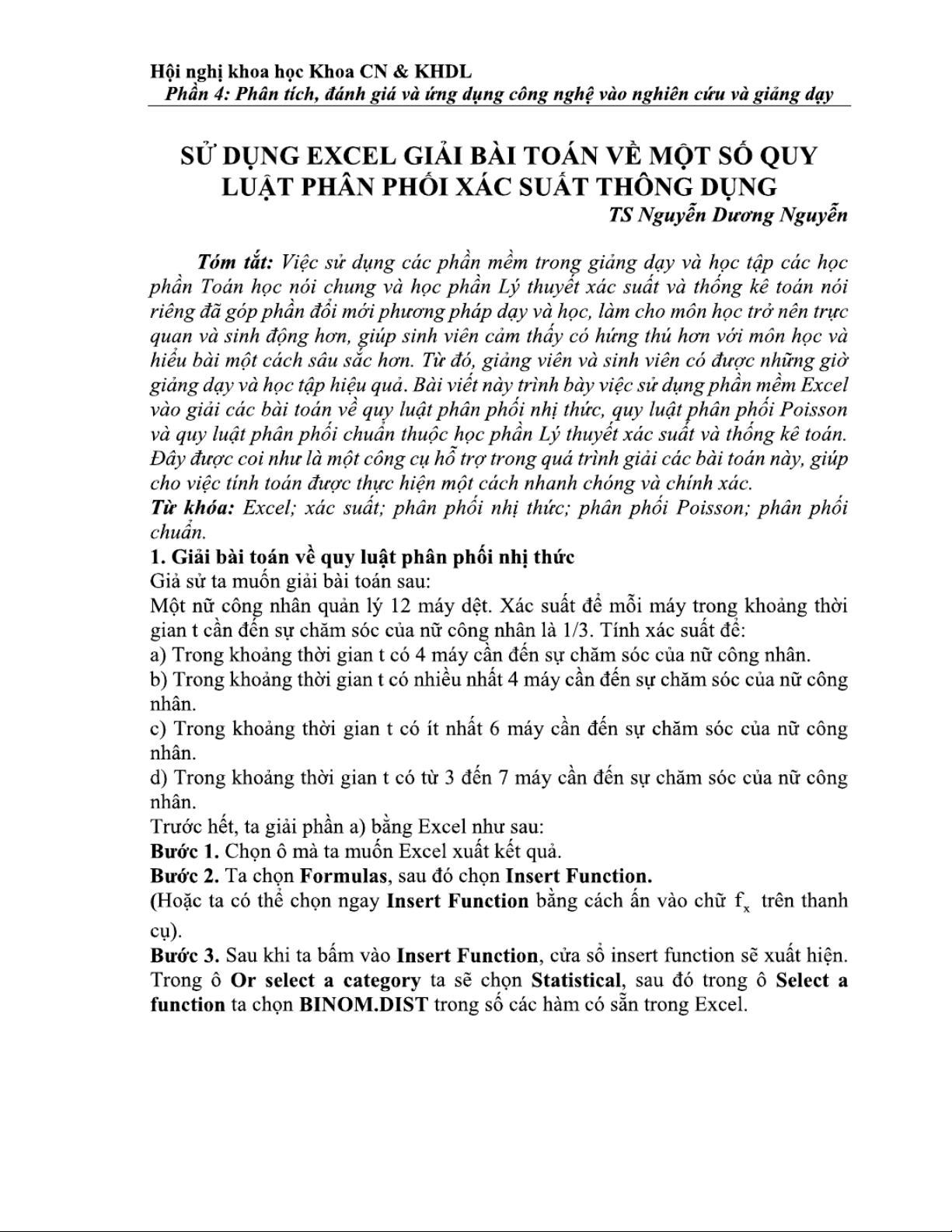 Sử dụng Excel giải một số quy luật phân phối môn Xác suất thống kê| Trường Đại học Ngoại Thương