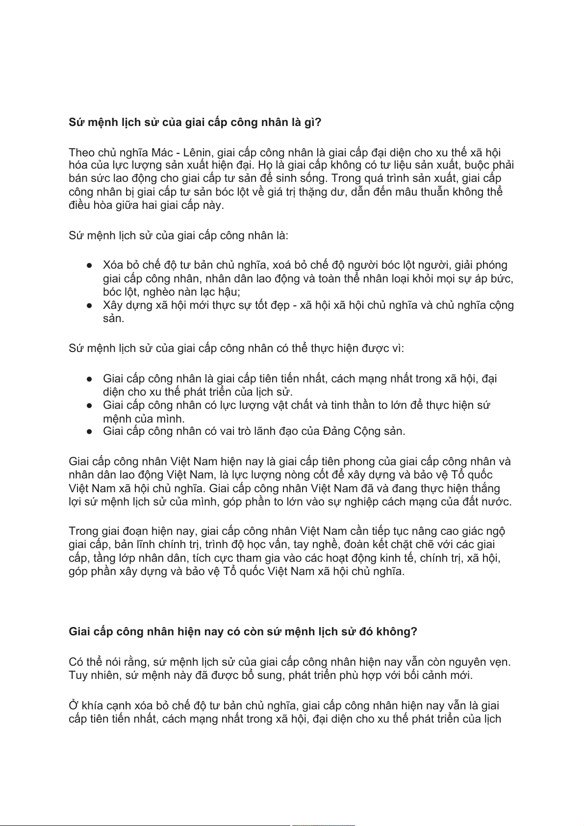 bán sức lao động cho giai cấp tư sản để sinh sống. Trong quá trình sản xuất, giai cấp