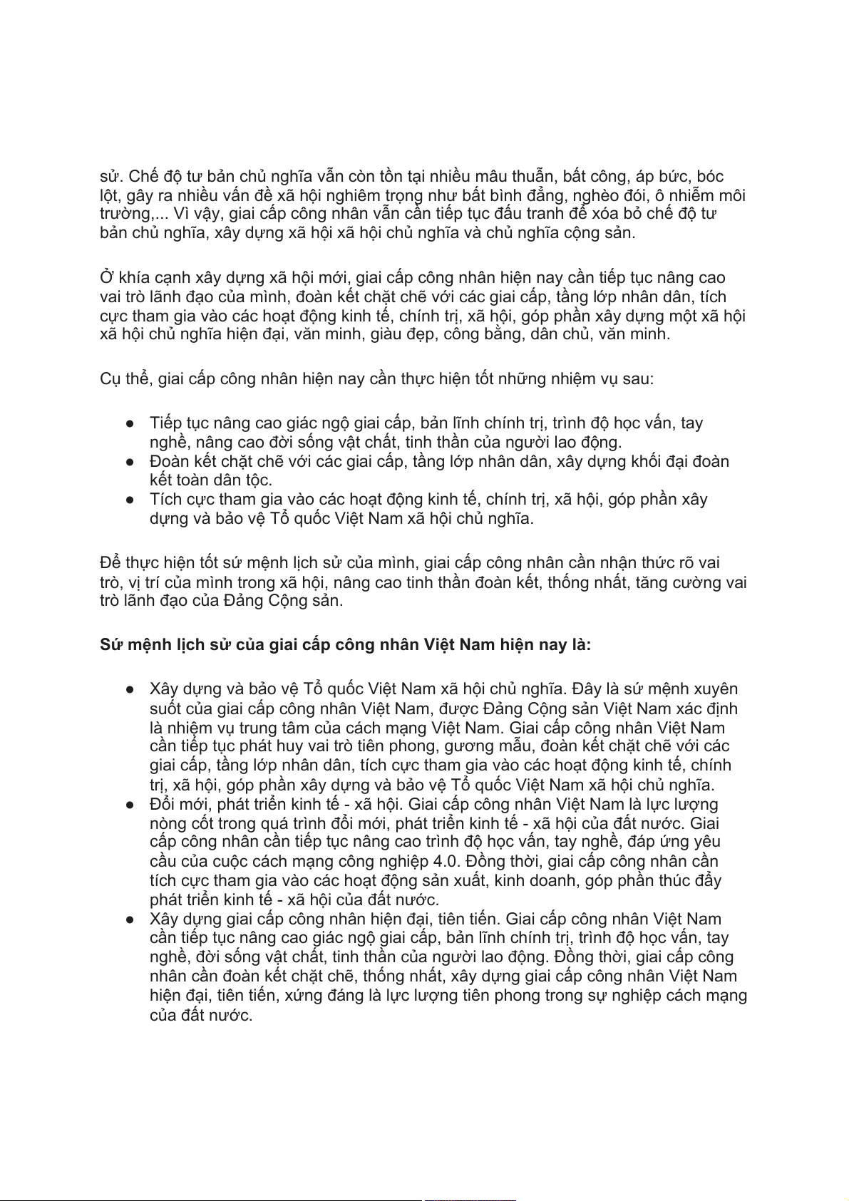 trường,... Vì vậy, giai cấp công nhân vẫn cần tiếp tục đấu tranh để xóa bỏ chế độ tư