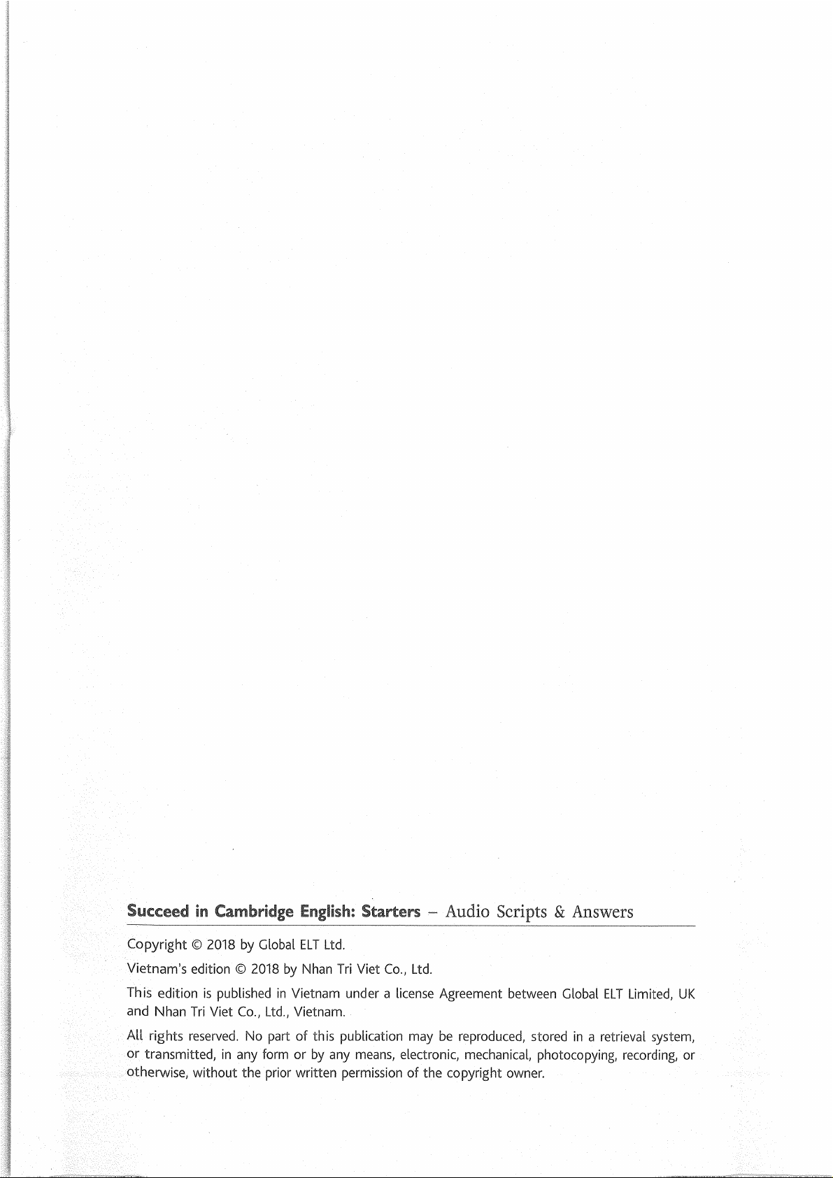 Succeed in Cambridge English Starters - 2018 Edition (Answer Key) | Trường Đại học Ngoại Thương