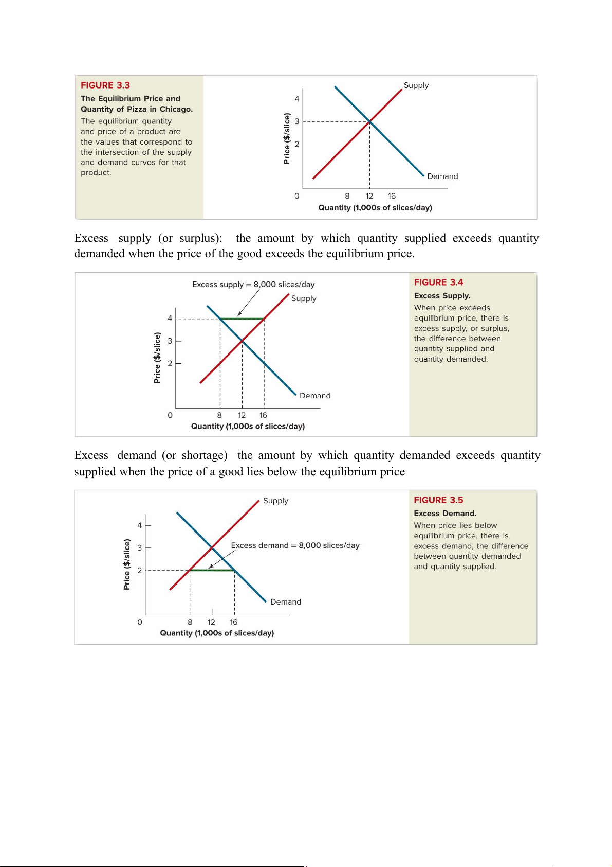 Excess supply (or surplus): the amount by which quantity supplied exceeds quantity