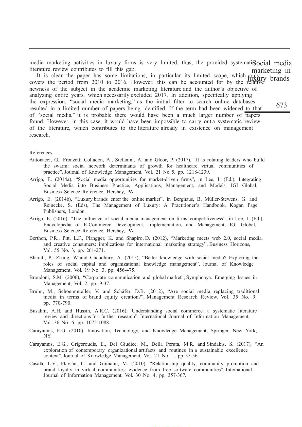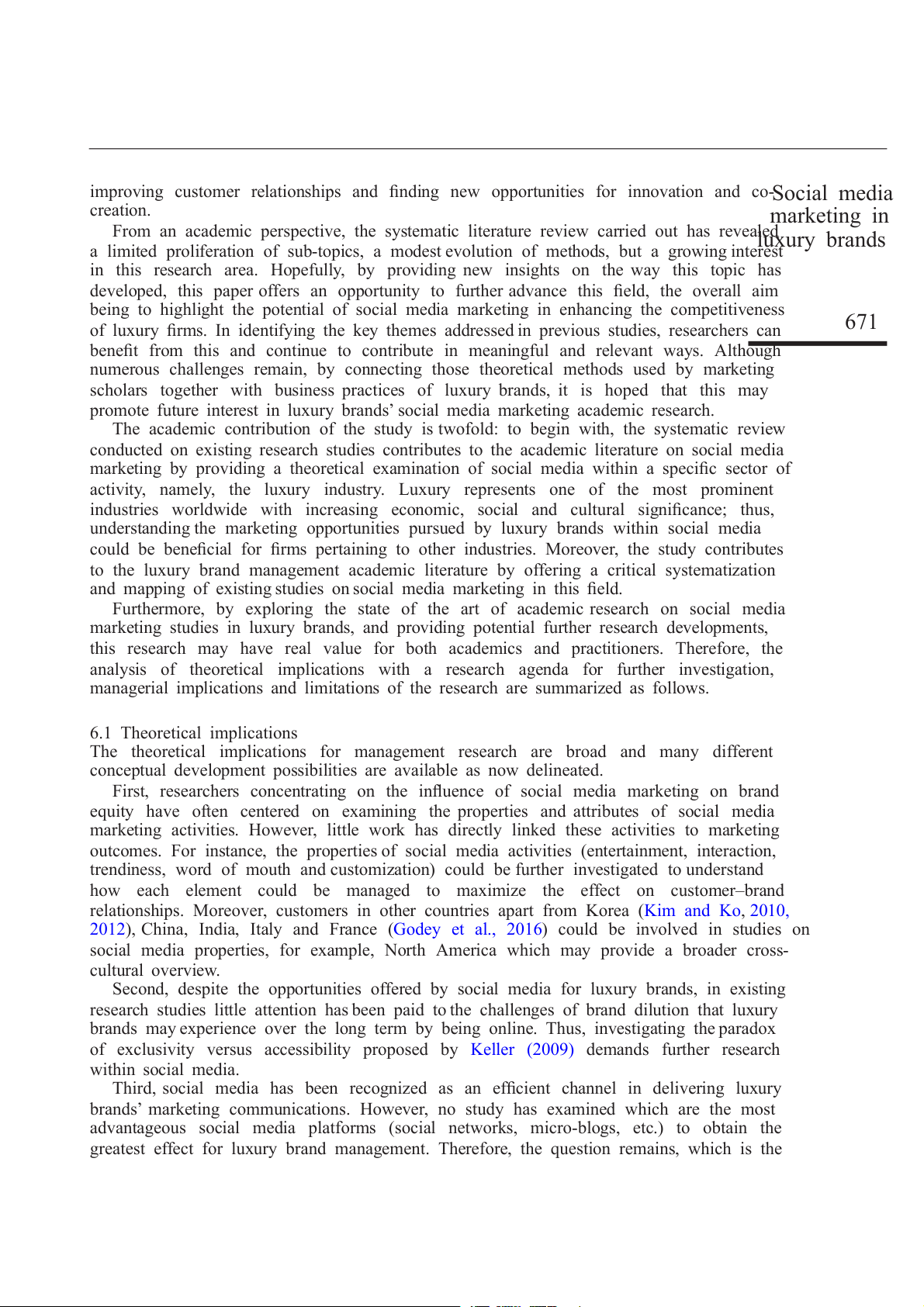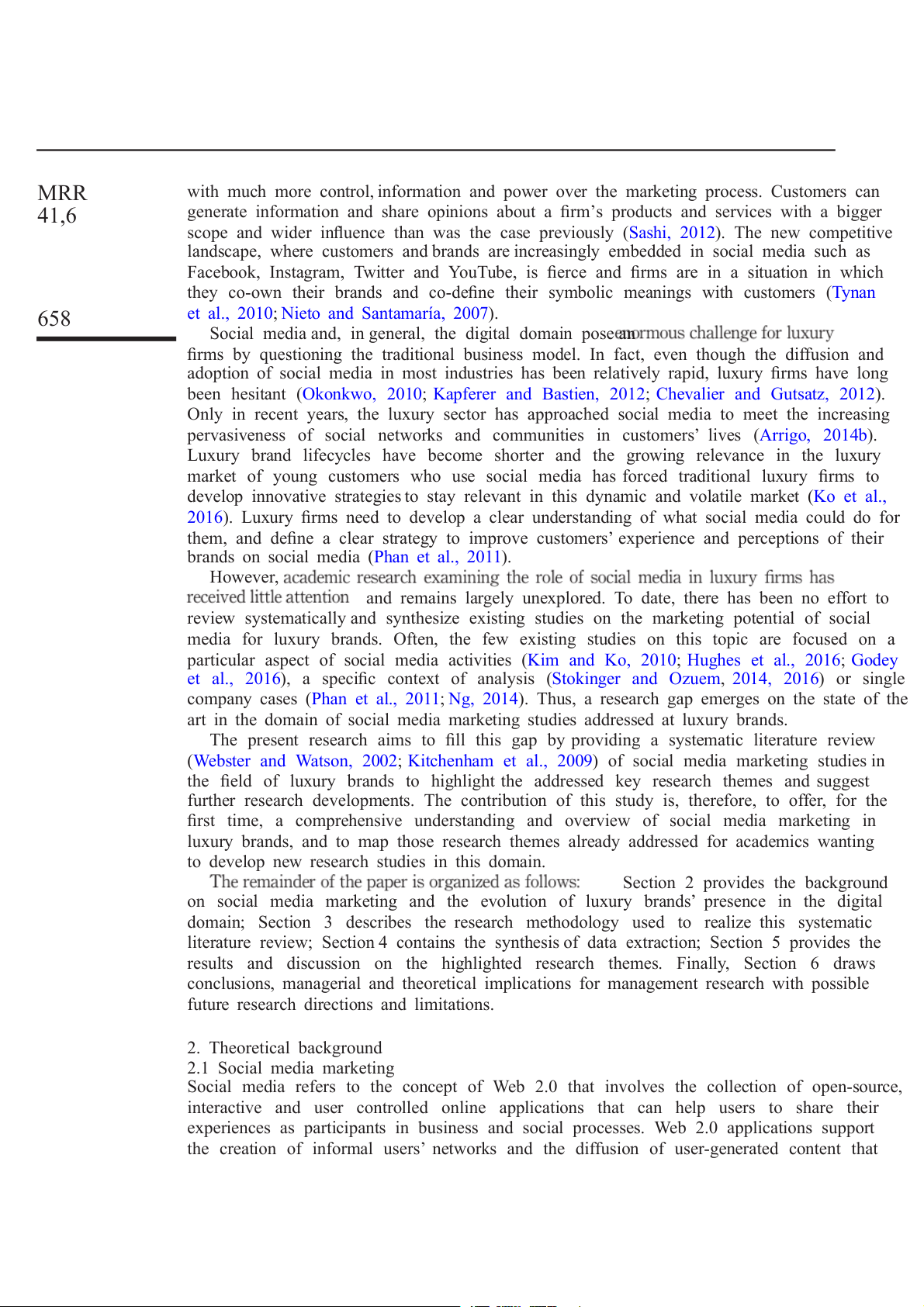 critical systematization of social media marketing academic literature in the field of luxury brands.