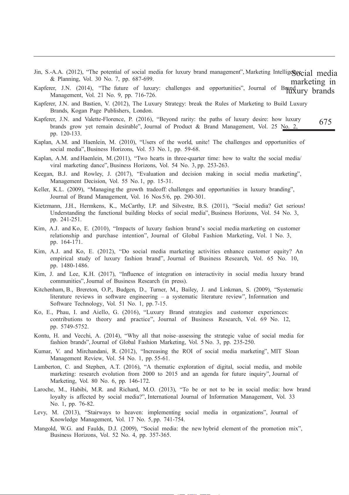 Jin, S.-A.A. (2012), “The potential of social media for luxury brand management”, Marketing Intelligence Social media