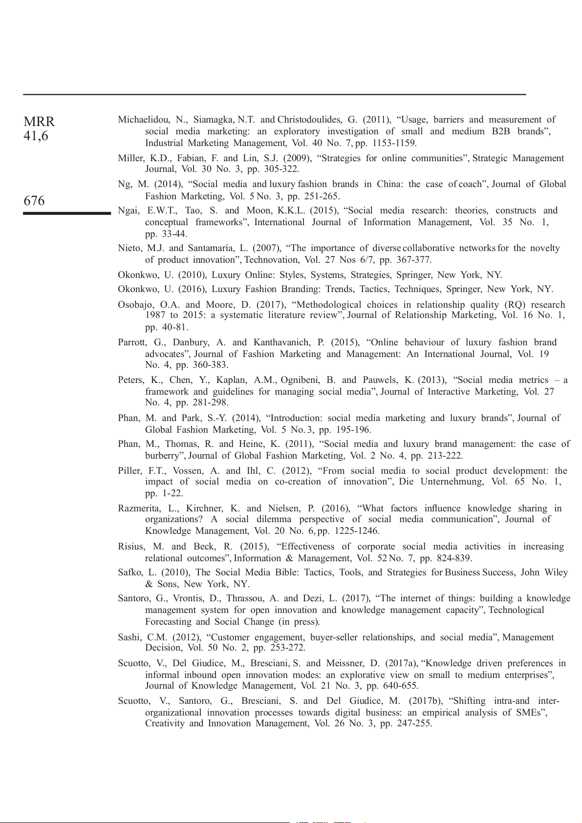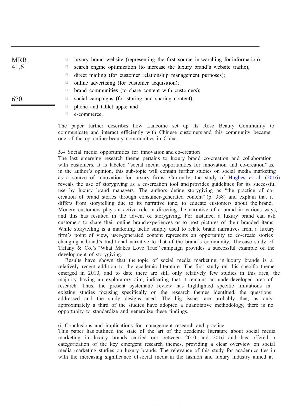 and Faulds, 2009) and marketing strategies for brand management (Laroche et al., 2013). Vol. 41 No. 6, 2018