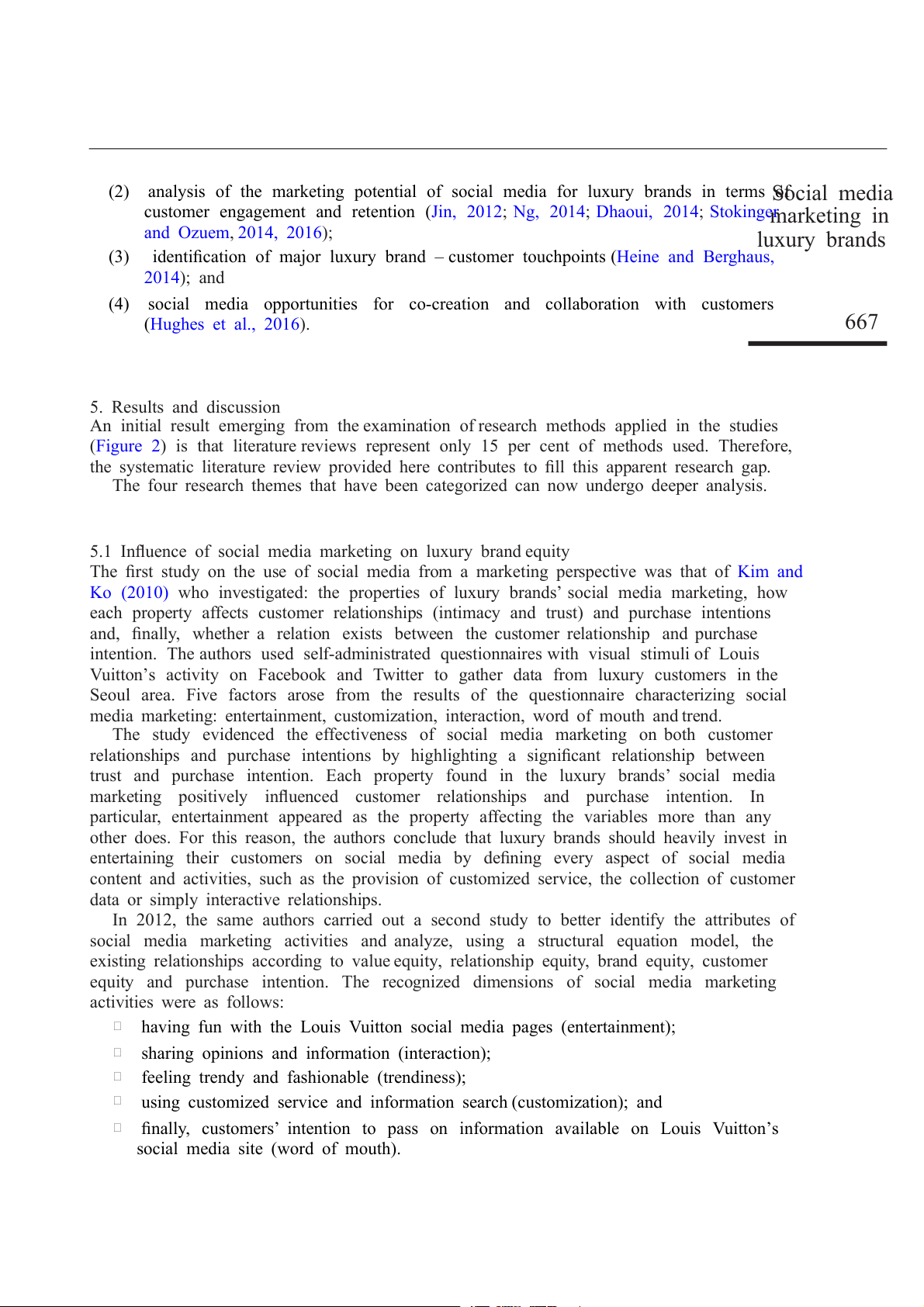 particular aspect of social media activities (Kim and Ko, 2010; Hughes et al., 2016; Godey