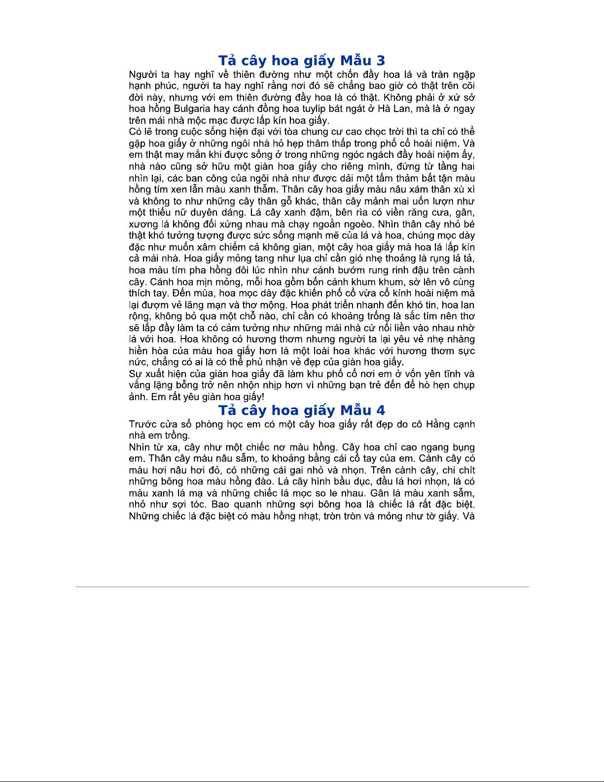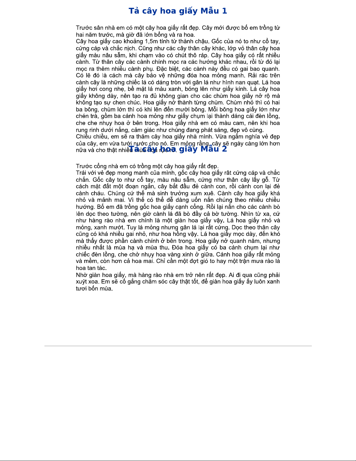 Tả cây hoa giấy - Mẫu miêu tả vẻ đẹp và sự sinh trưởng