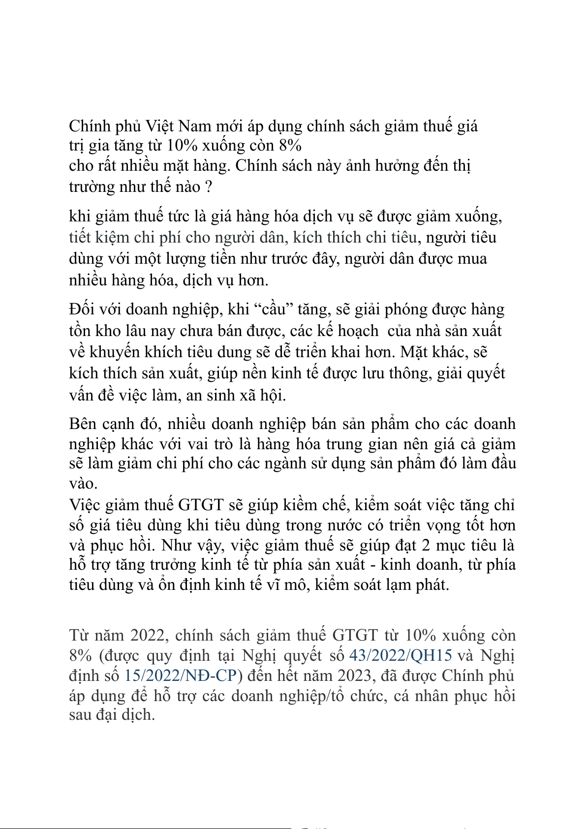 8% (được quy định tại Nghị quyết số và 43/2022/QH15 Nghị