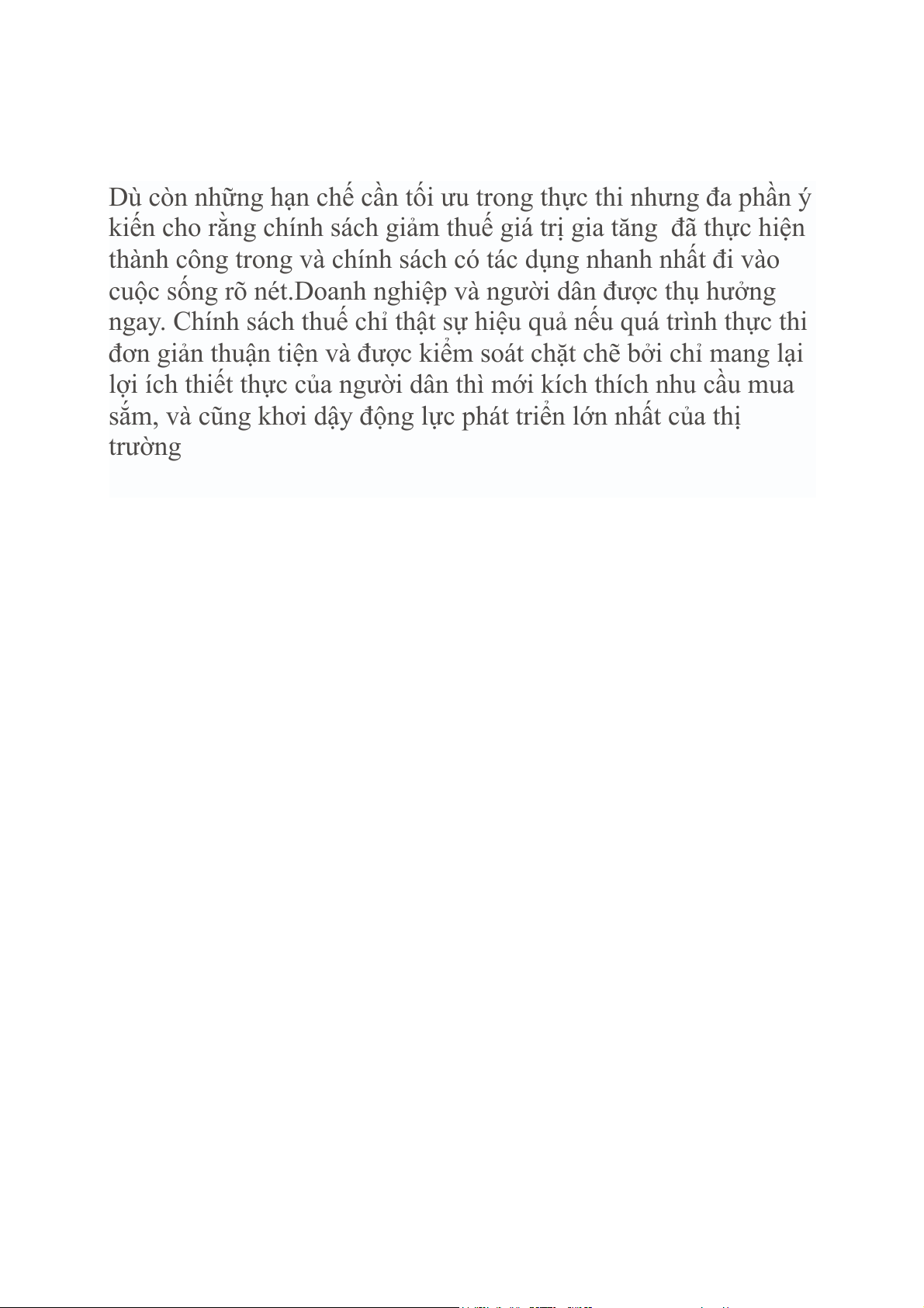 kiến cho rằng chính sách giảm thuế giá trị gia tăng đã thực hiện