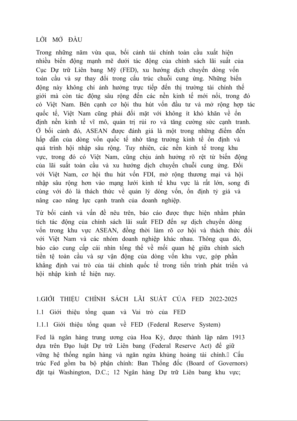 1.GIỚI THIỆU CHÍNH SÁCH LÃI SUẤT CỦA FED 2022-2025