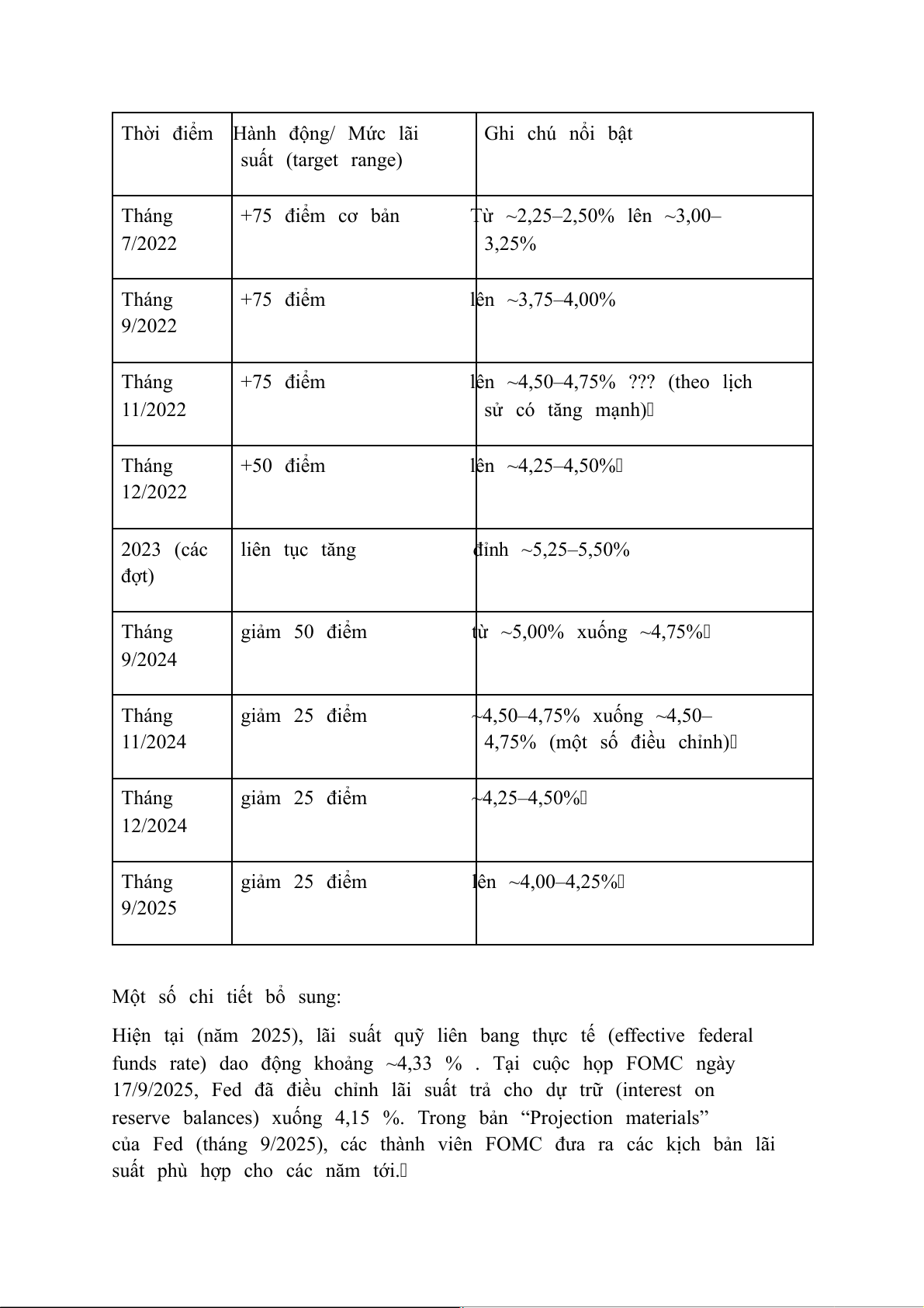 1.2. Chính sách lãi suất của Fed giai đoạn 2022–2025