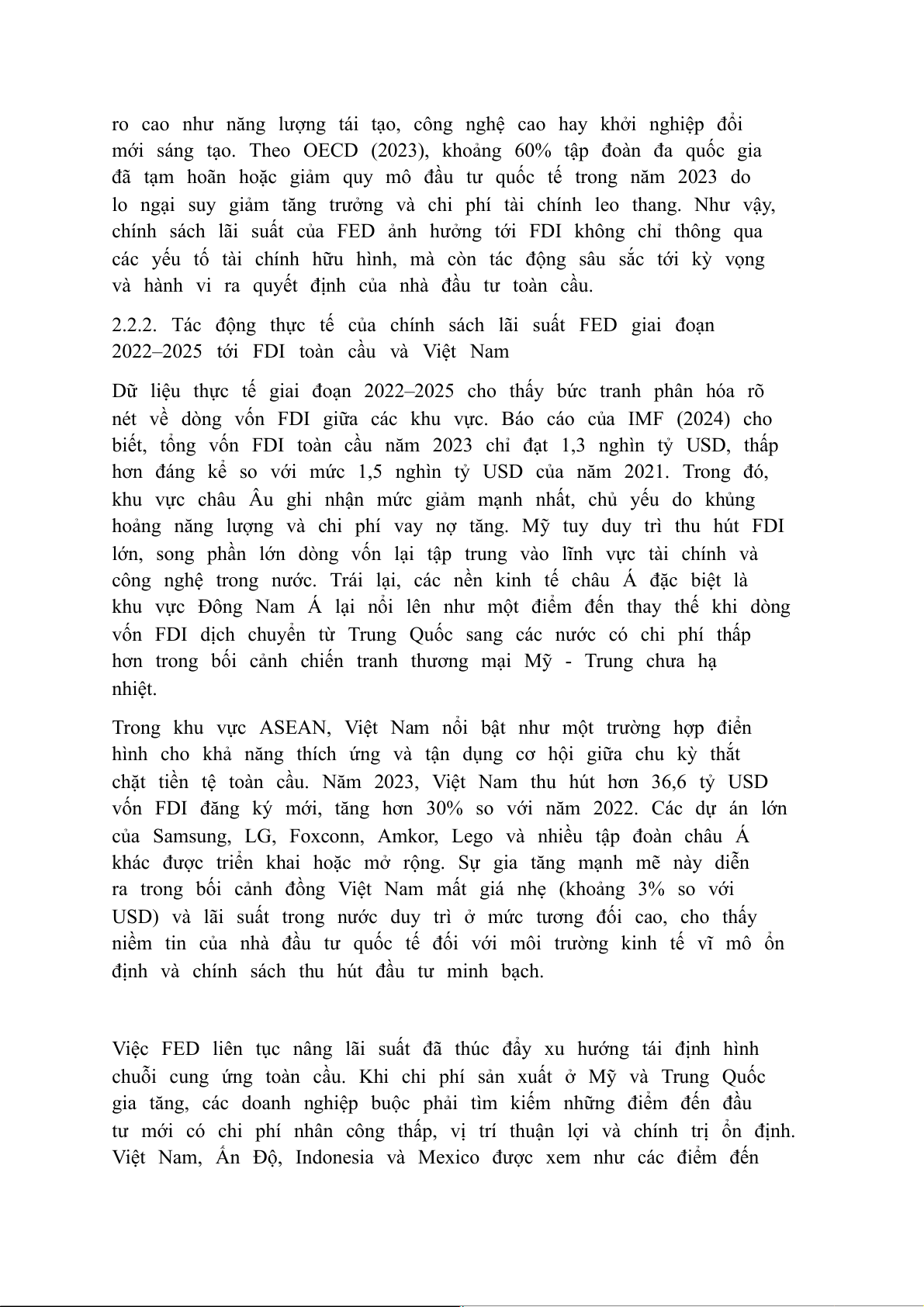 tích tác động của chính sách lãi suất FED đến sự dịch chuyển dòng