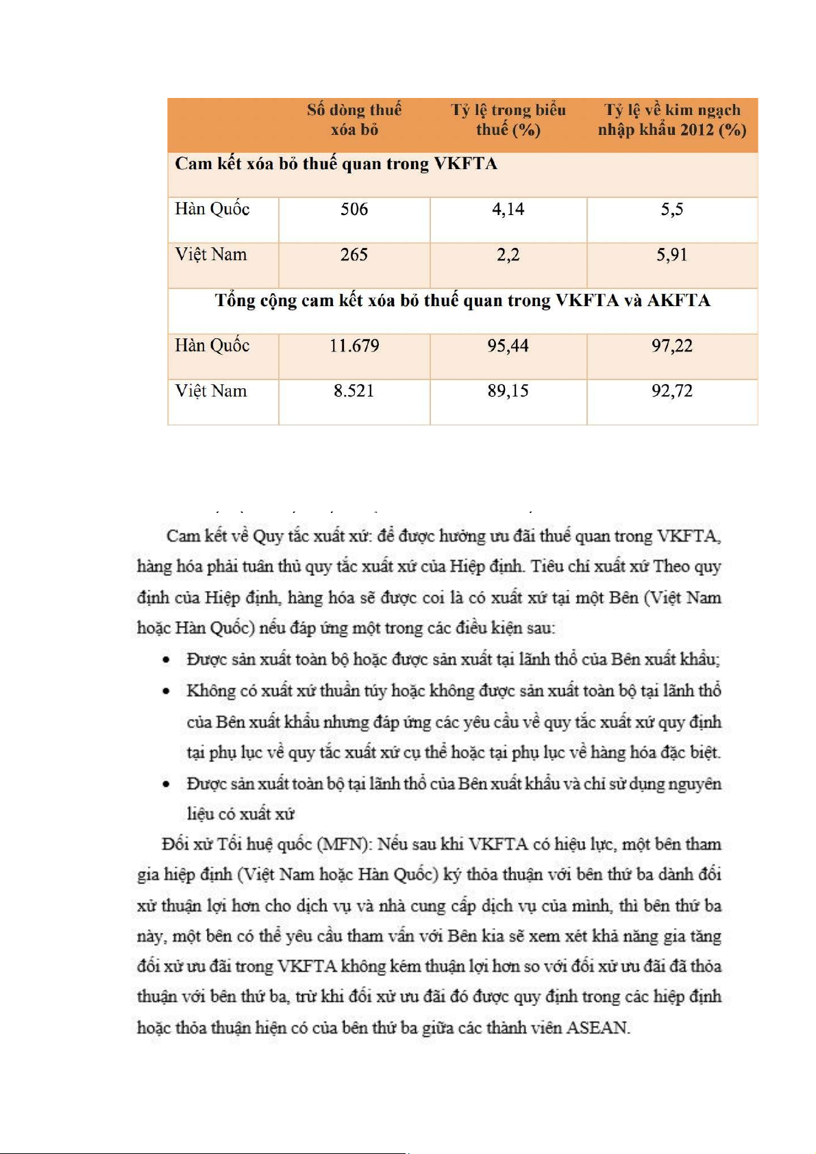 ưu ãi trong VKFTA không kém thuận lợi hơn so với ối xử ưu ãi ã thỏa thuận với