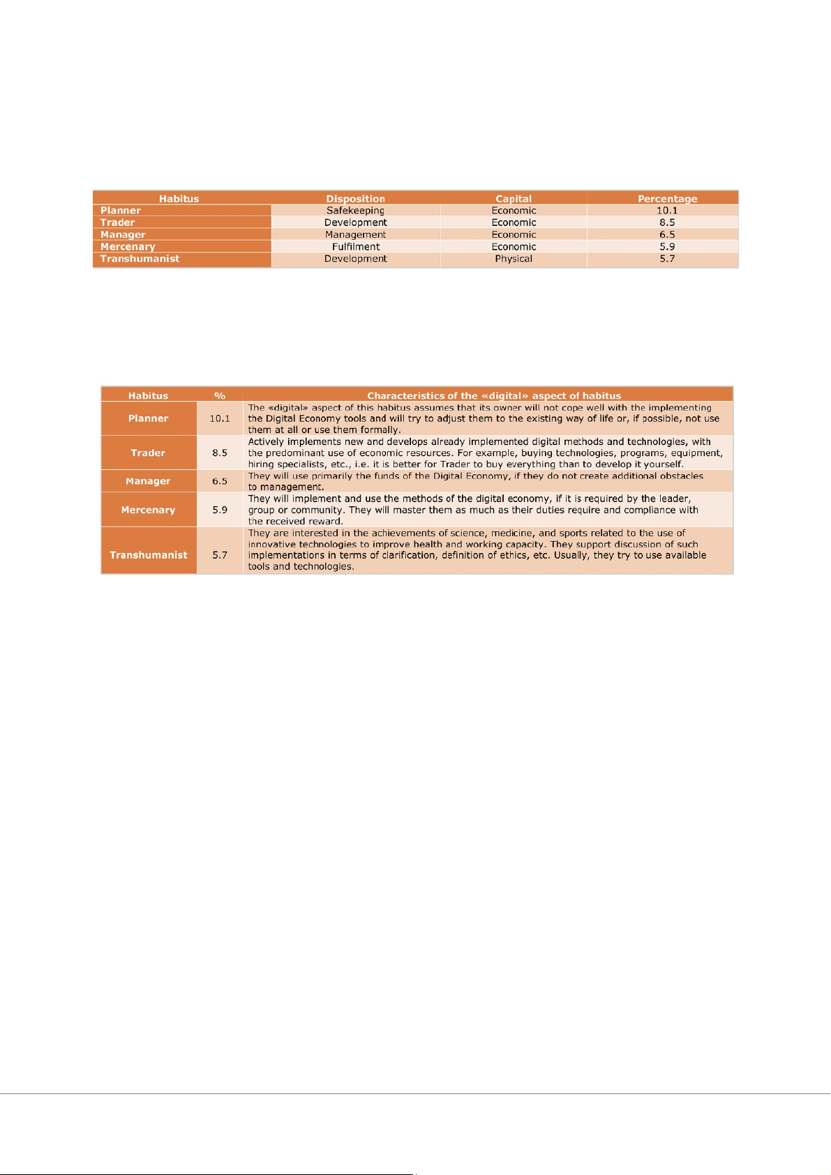 Bảng 2: Đặc điểm của các nhóm habitus số lớn nhất trong dân số Nga