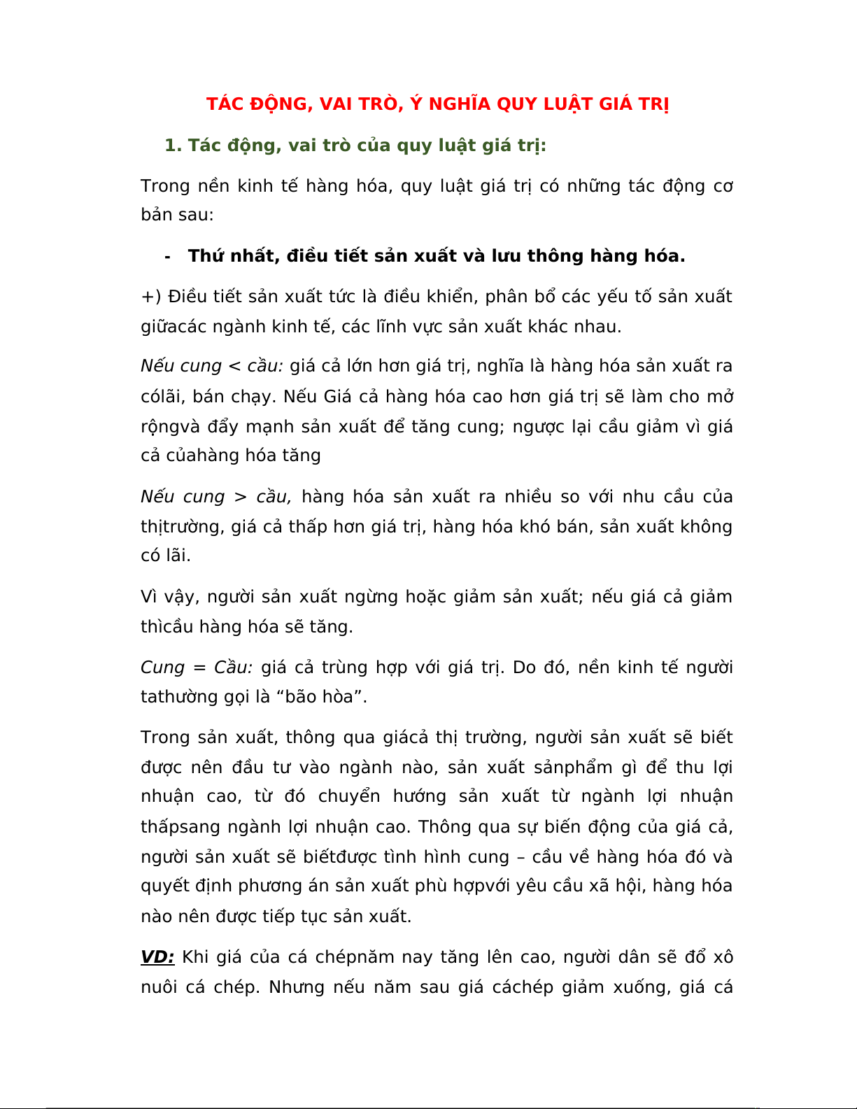 TÁC ĐỘNG, VAI TRÒ, Ý NGHĨA QUY LUẬT GIÁ TRỊ