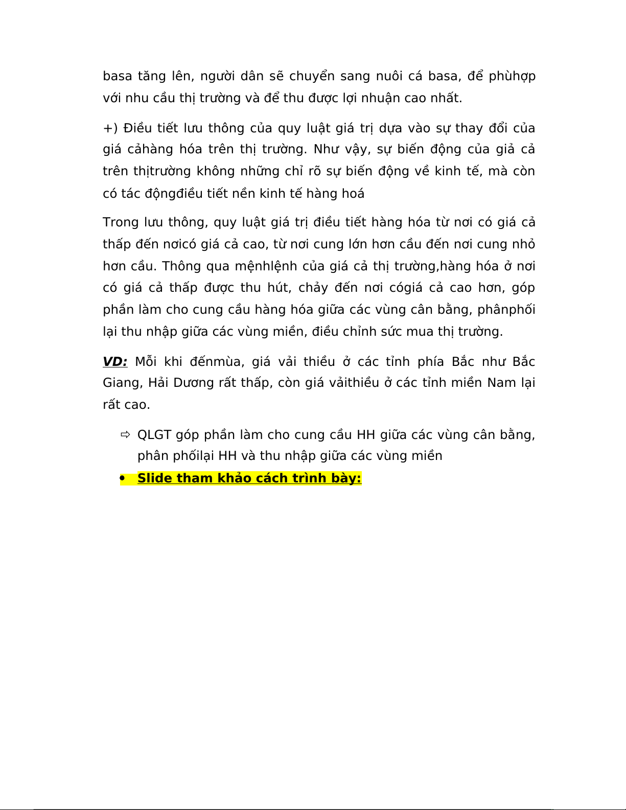 +) Điều tiết lưu thông của quy luật giá trị dựa vào sự thay đổi của