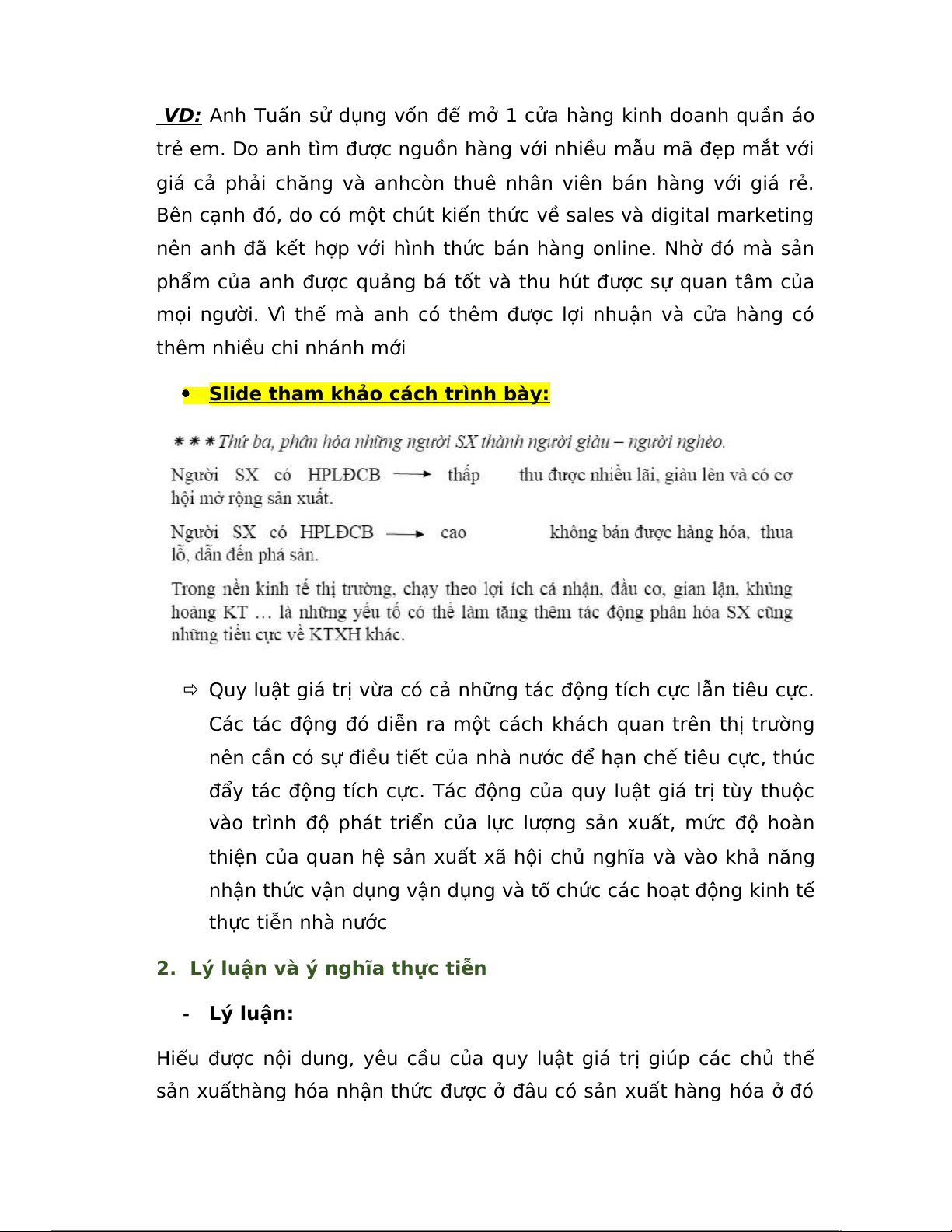 triển phải tôn trọng và hành xử theo quy luật giá trị. - Thực tiễn: