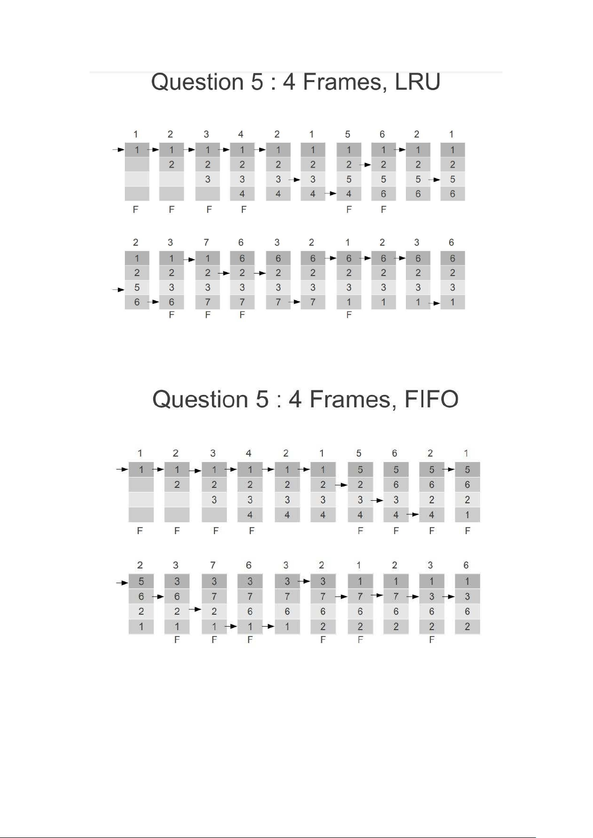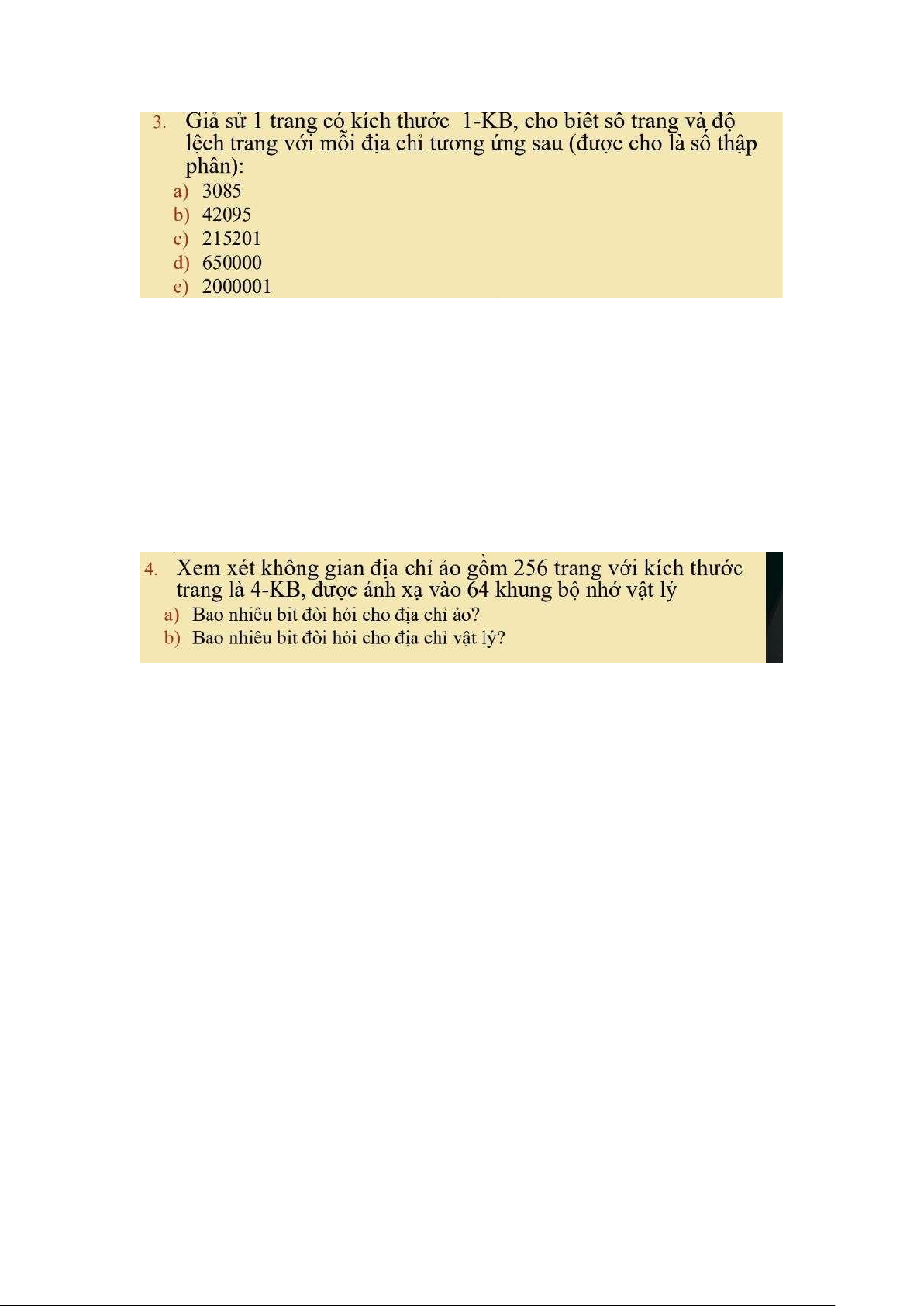 e. page = 1953; o 昀昀 set = 12 Tương tự câu 1: 256=2^8 4=1024*4=4096=2^12 64=2^6 A)12+8=20 B)12+6=18 Câu hỏi:bộ nhớ ảo 1) =>> lru=10 Fifo=>15 OPT=>8 3) A) 5000 B) 50