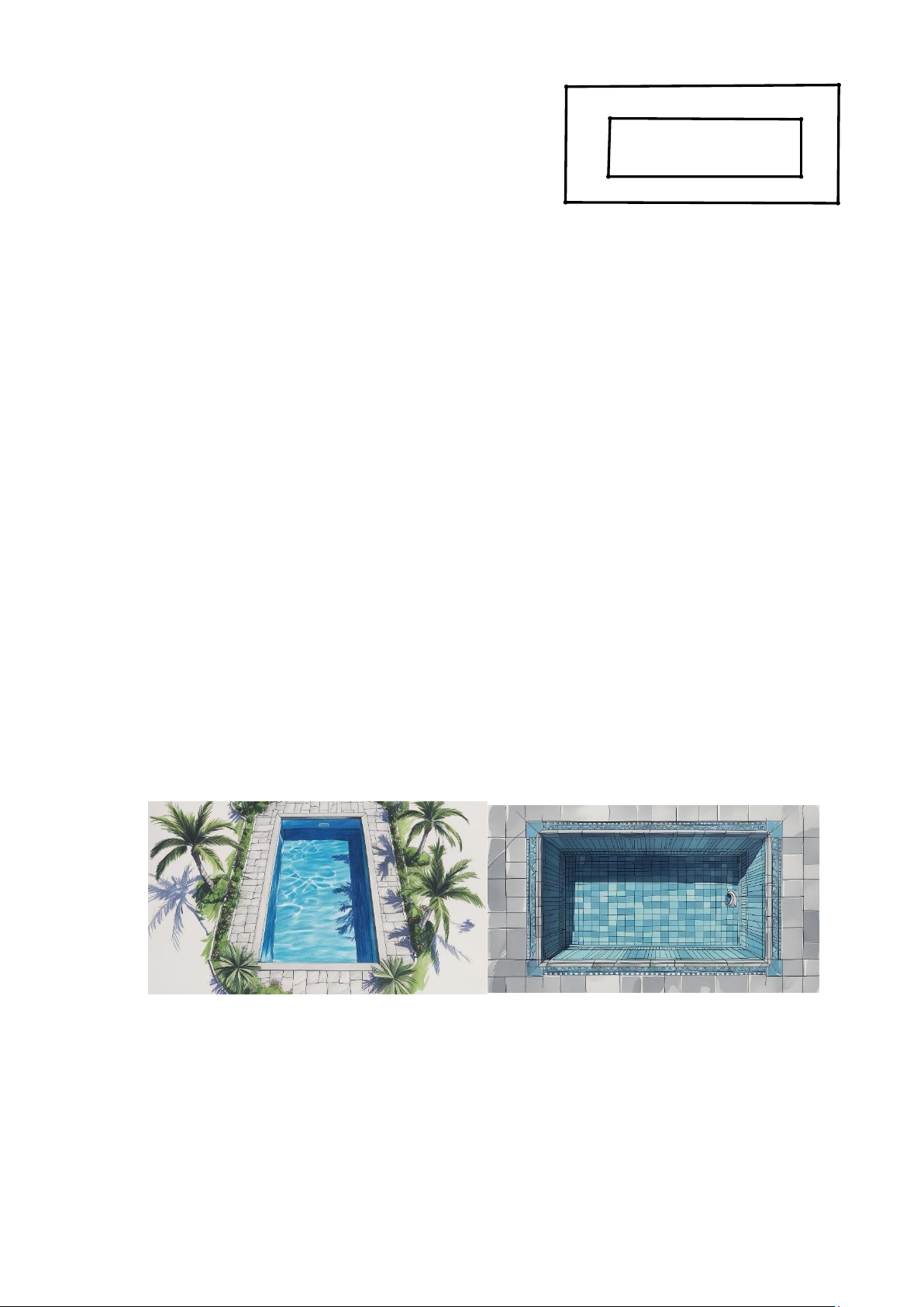 chiều dài của bể bơi và diện tích phấn lát gạch.
