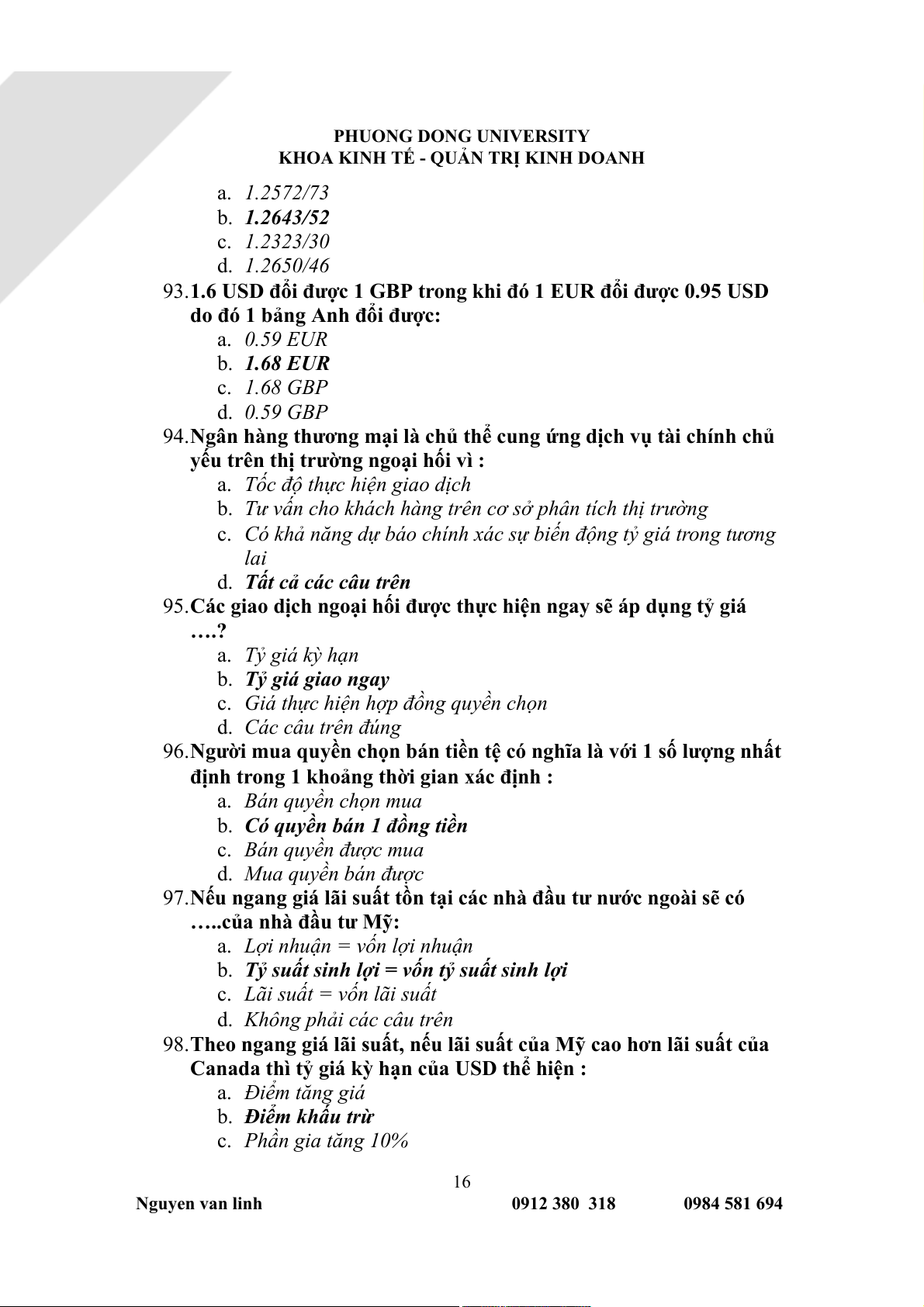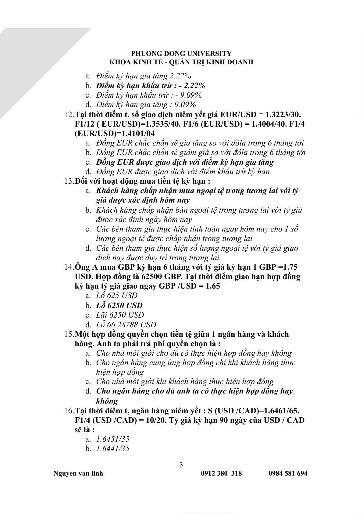 15. Một hợp đồng quyền chọn tiền tệ giữa 1 ngân hàng và khách