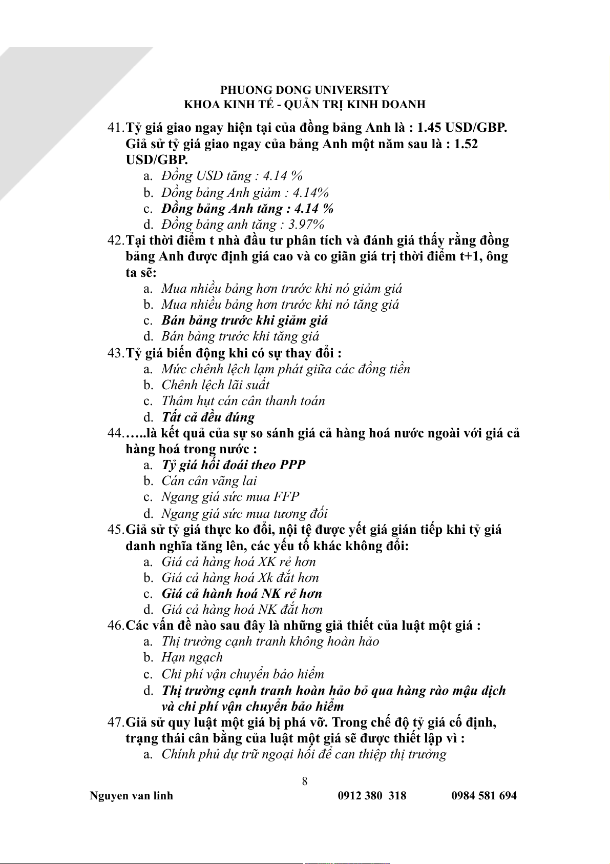8. Giả sử tại thời điểm t, ngân hàng A niêm yết : GDP /USD = 1.6727