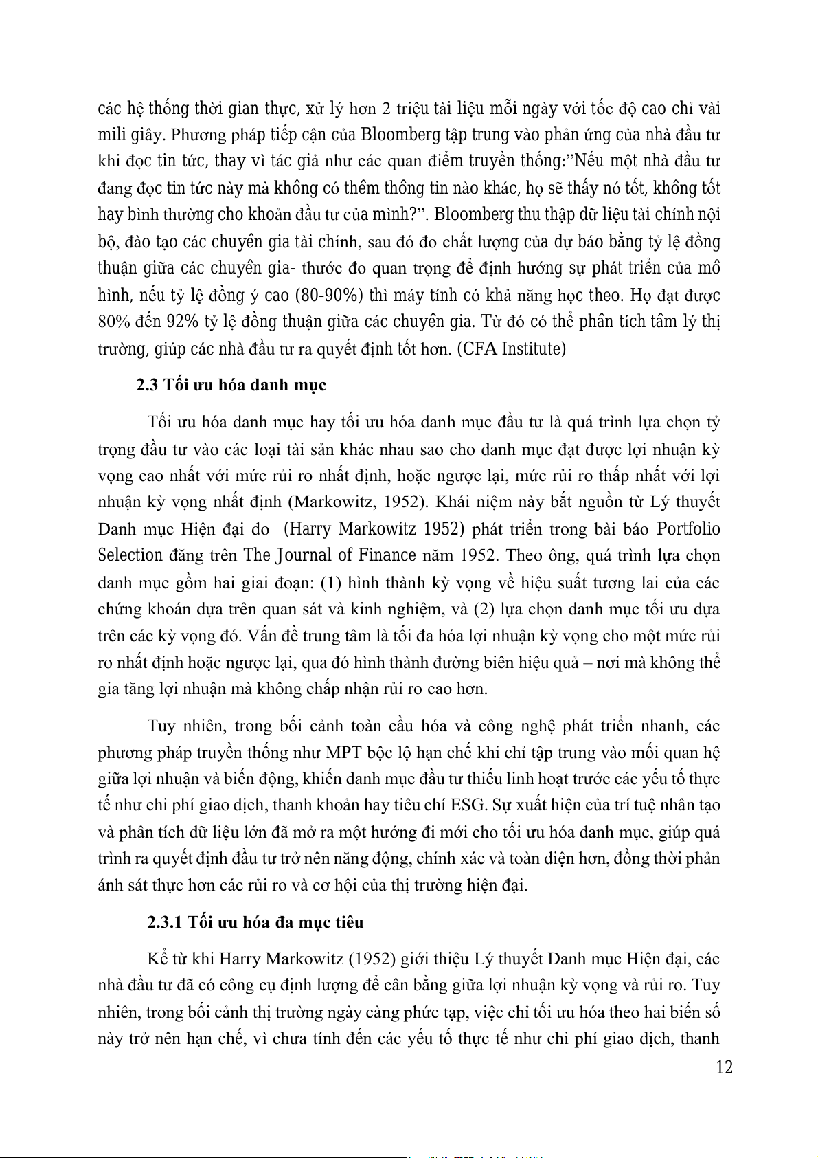 nhà đầu tư đã có công cụ định lượng để cân bằng giữa lợi nhuận k vọng và rủi ro. Tuy