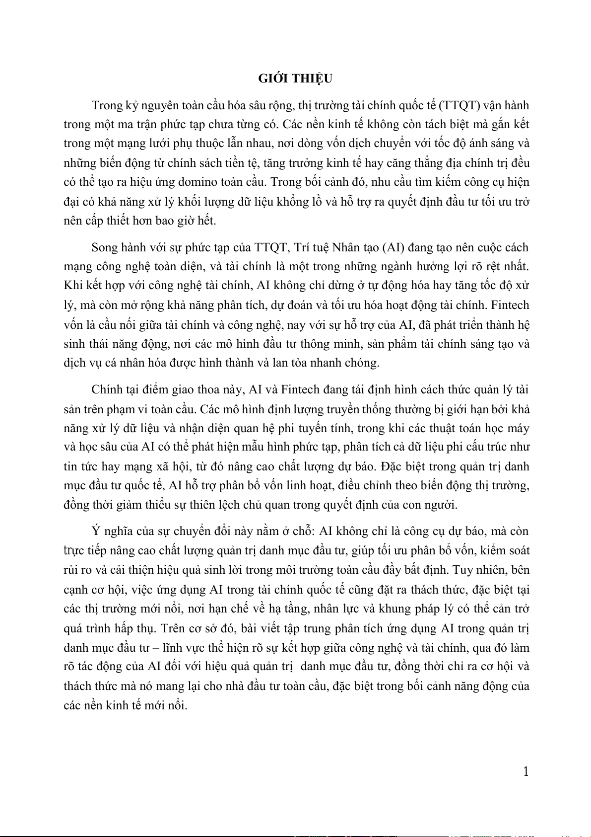 CHƯƠNG 1: TỔNG QUAN VỀ AI TRONG BỐI CẢNH TÀI CHÍNH QUỐC