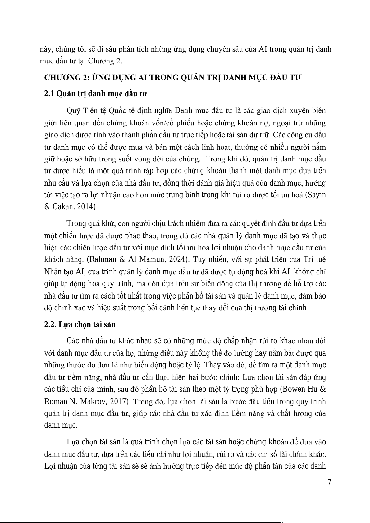 CHƯƠNG 2: ỨNG DỤNG AI TRONG QUẢN TRỊ DANH MỤC ĐẦU TƯ 7